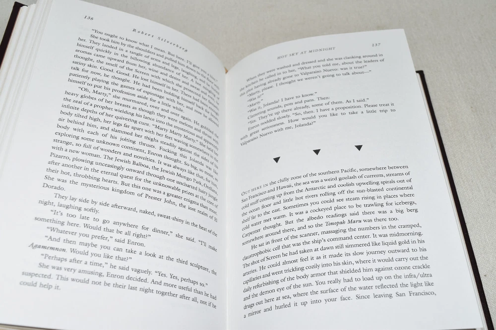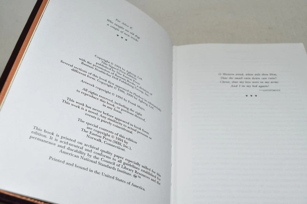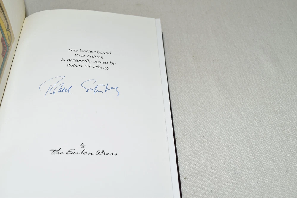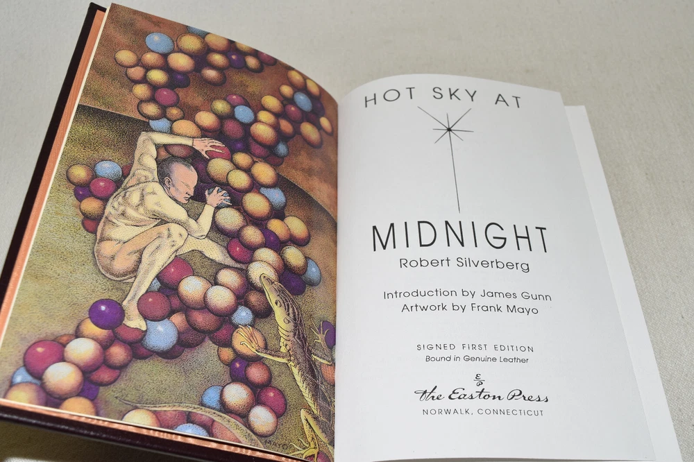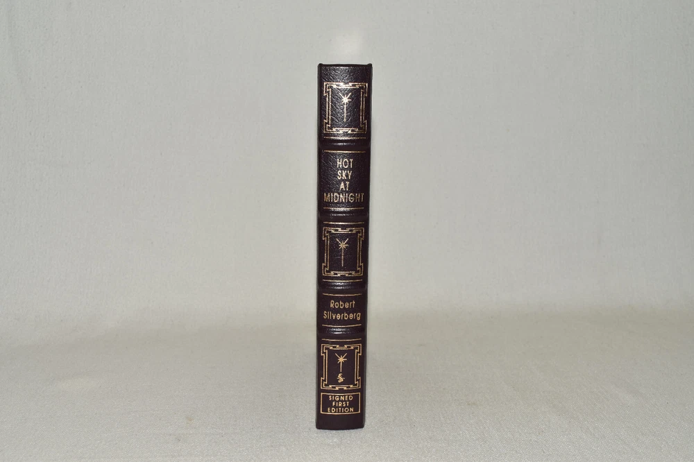 From the Easton Press Signed Collection... Hot Sky at Midnight PERSONALLY SIGNED by Robert Silverberg Introduction by James Gunn Illustrated by Frank Mayo Easton Press Signed Edition Copyright 1994 by The Easton Press Bound in Premium Full Leather This Signed Edition contains all of the classic Easton Press trimmings: Premium Leather Silk Moire Endleaves Distinctive Cover Design Hubbed Spine, Accented in Real 22KT Gold Satin Ribbon Page Marker Gilded Page Edges Long-lasting, High Quality Acid-neutral Paper Smyth-sewn Pages for Strength and Durability A very scarce title in any condition, this copy is in Fine condition. The front and back covers are both in terrific condition and the gilded page edges show only minor wear (see pictures of all sides). There is a blank bookplate affixed to the second page. This book is personally signed by the Author and would be a beautiful addition to your Easton Press collection. Hopefully you can add this book to your collection and enjoy it in the years to come... Please Email Me With Any Questions You Might Have! Shipping Info: Buyer to Pay Shipping and Handling International Bidders Pay Extra Shipping Seller Not Responsible For Uninsured Items Lost or Damaged in Mail Forms of Payment Accepted: Paypal Good luck and happy bidding! Powered by eBay Turbo Lister The free listing tool. List your items fast and easy and manage your active items.