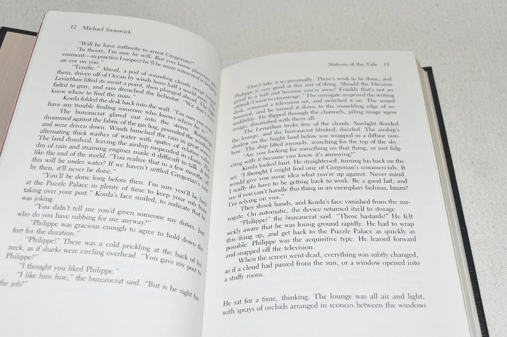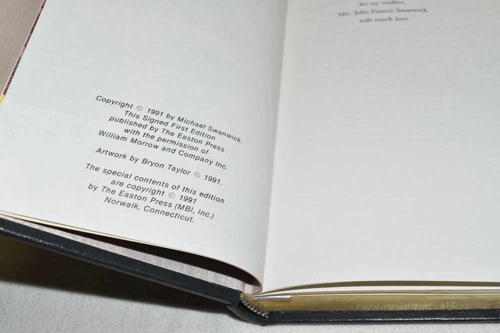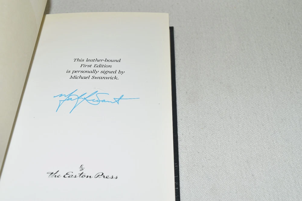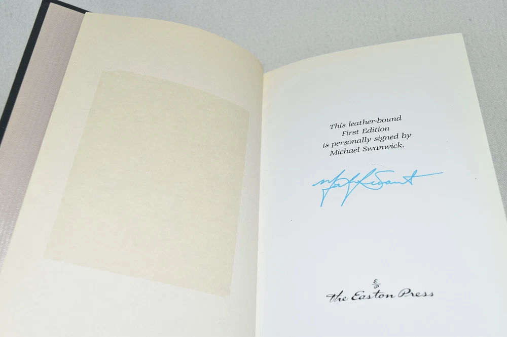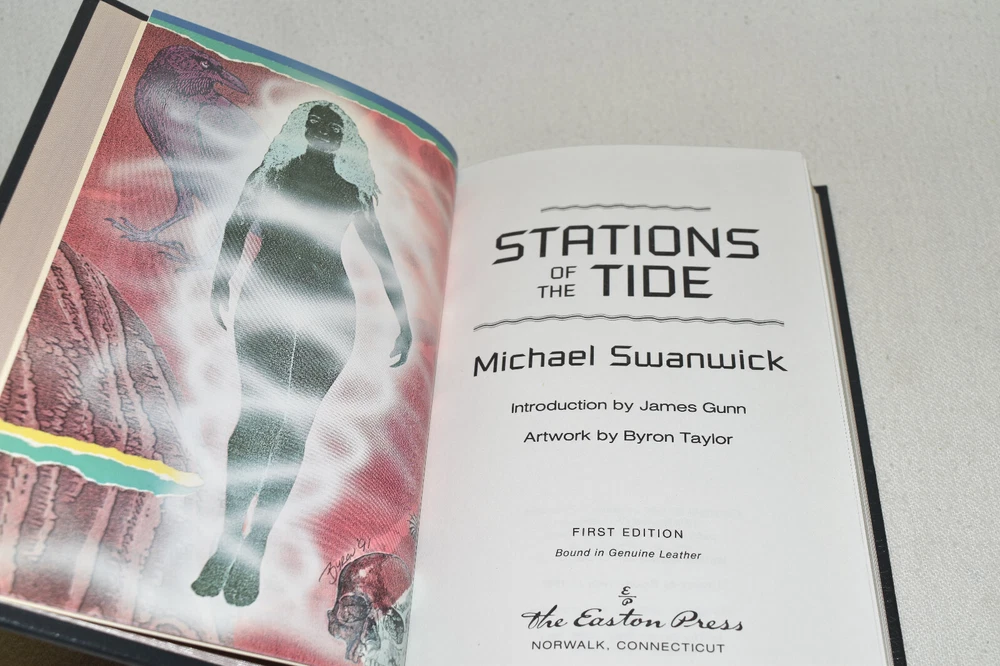 From the Easton Press Signed Collection... Stations of the Tide PERSONALLY SIGNED by Michael Swanwick Introduction by James Gunn Illustrated by Byron Taylor Easton Press Signed Edition Copyright 1991 by The Easton Press Bound in Premium Full Leather This Signed Edition contains all of the classic Easton Press trimmings: Premium Leather Silk Moire Endleaves Distinctive Cover Design Hubbed Spine, Accented in Real 22KT Gold Satin Ribbon Page Marker Gilded Page Edges Long-lasting, High Quality Acid-neutral Paper Smyth-sewn Pages for Strength and Durability A very scarce title in any condition, this copy is in Fine condition. The front and back covers are both in near perfect condition and the gilded page edges show hardly any wear (see pictures of all sides). There is light residue on the second page. This book is personally signed by the Author and would be a beautiful addition to your Easton Press collection. Hopefully you can add this book to your collection and enjoy it in the years to come... Please Email Me With Any Questions You Might Have! Shipping Info: Buyer to Pay Shipping and Handling International Bidders Pay Extra Shipping Seller Not Responsible For Uninsured Items Lost or Damaged in Mail Forms of Payment Accepted: Paypal Good luck and happy bidding! Powered by eBay Turbo Lister The free listing tool. List your items fast and easy and manage your active items.