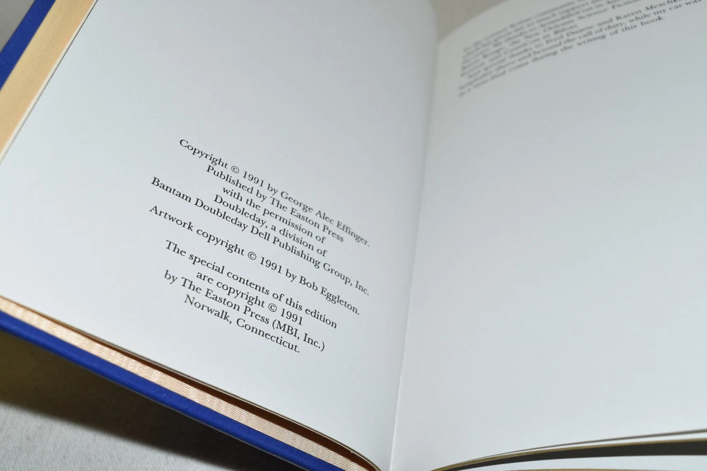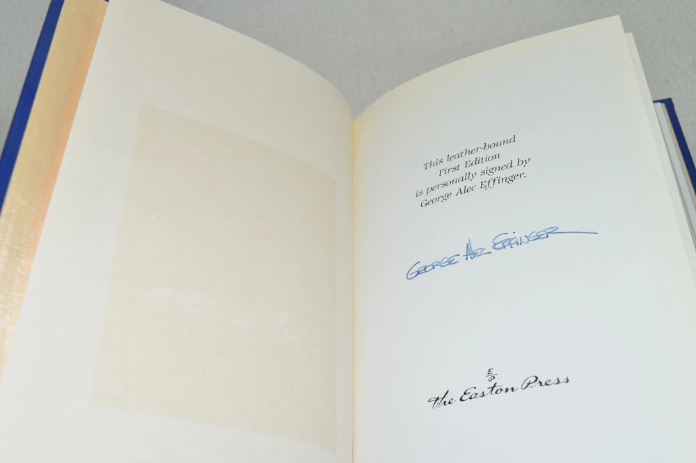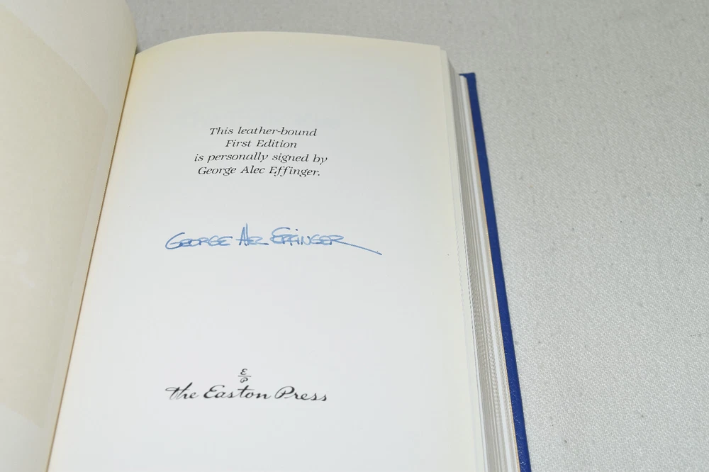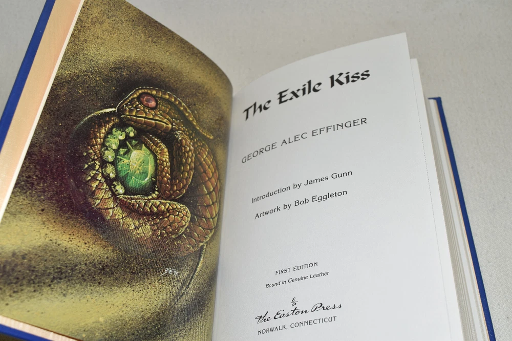 From the Easton Press Signed Collection... The Exile Kiss PERSONALLY SIGNED by George Alec Effinger Introduction by James Gunn Illustrated by Bob Eggleton Easton Press Signed Edition Copyright 1991 by The Easton Press Bound in Premium Full Leather This Signed Edition contains all of the classic Easton Press trimmings: Premium Leather Silk Moire Endleaves Distinctive Cover Design Hubbed Spine, Accented in Real 22KT Gold Satin Ribbon Page Marker Gilded Page Edges Long-lasting, High Quality Acid-neutral Paper Smyth-sewn Pages for Strength and Durability A very scarce title in any condition, this copy is in Fine condition. The front and back covers are both in near perfect condition and the gilded page edges show hardly any wear (see pictures of all sides). There is light residue on the second page. This book is personally signed by the Author and would be a beautiful addition to your Easton Press collection. Hopefully you can add this book to your collection and enjoy it in the years to come... Please Email Me With Any Questions You Might Have! Shipping Info: Buyer to Pay Shipping and Handling International Bidders Pay Extra Shipping Seller Not Responsible For Uninsured Items Lost or Damaged in Mail Forms of Payment Accepted: Paypal Good luck and happy bidding! Powered by eBay Turbo Lister The free listing tool. List your items fast and easy and manage your active items.