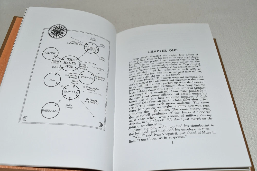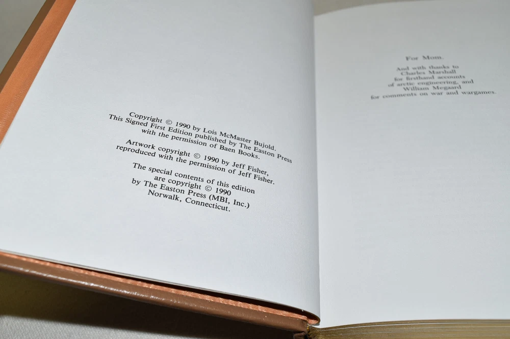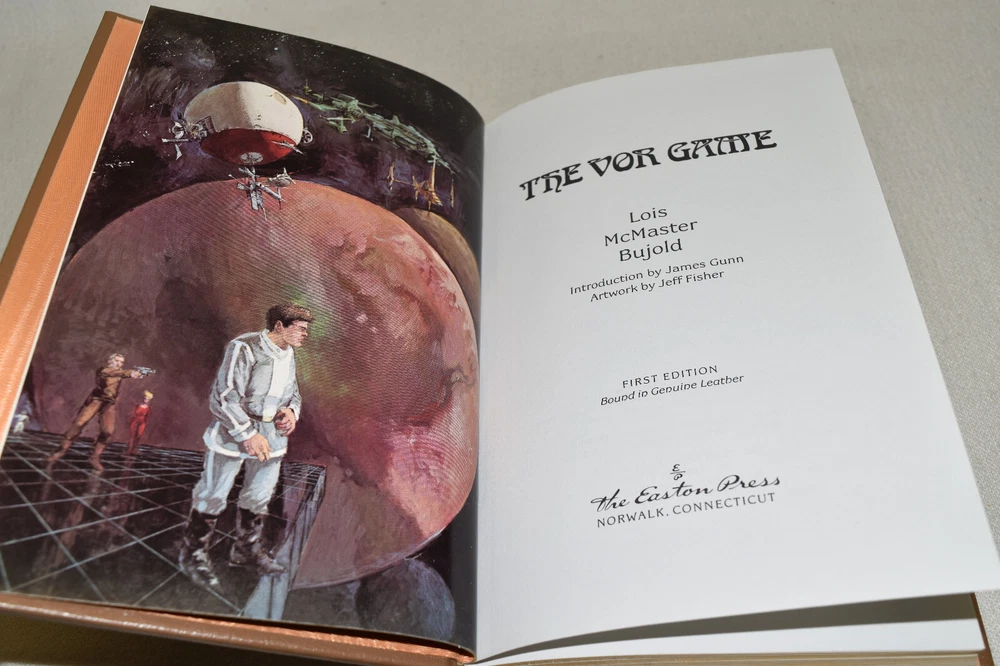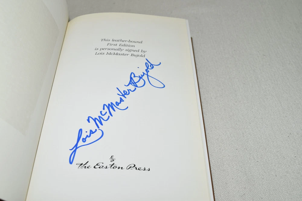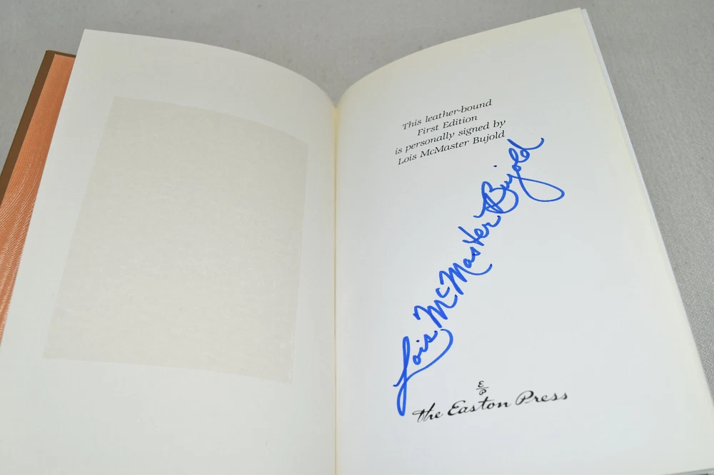 From the Easton Press Signed First Edition Collection... The Vor Game by Lois McMaster Bujold Illustrated by Jeff Fisher Introduction by James Gunn Collector's Edition Copyright 1990 by The Easton Press Bound in Premium Full Leather This volume contains all of the classic Easton Press trimmings: Premium Leather Silk Moire Endleaves Distinctive Cover Design Hubbed Spine, Accented in Real 22KT Gold Satin Ribbon Page Marker Gilded Page Edges Long-lasting, High Quality Acid-neutral Paper Smyth-sewn Pages for Strength and Durability Beautiful Illustrations A very scarce title in any condition, this 1990 Easton Press Signed First Edition is in Fine condition! The front and back covers are both in terrific condition and the gilded page edges show hardly any wear (see pictures of all sides of gilt). There is faint residue on the second page. This book is part of the Signed First Editions Collection published by Easton Press. It is Personally Signed by The Author and would be a beautiful addition to your Easton Press collection. Please Email Me With Any Questions You Might Have! Shipping Info: Buyer to Pay Shipping and Handling International Bidders Pay Extra Shipping Seller Not Responsible For Uninsured Items Lost or Damaged in Mail Forms of Payment Accepted: Paypal Good luck and happy bidding! Powered by eBay Turbo Lister The free listing tool. List your items fast and easy and manage your active items.
