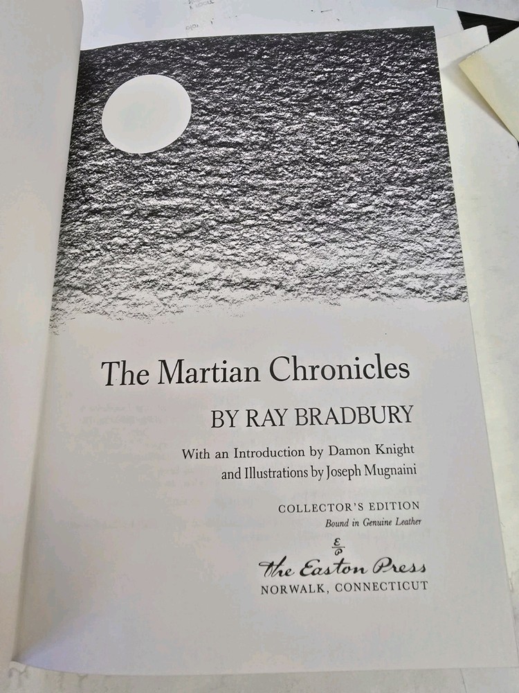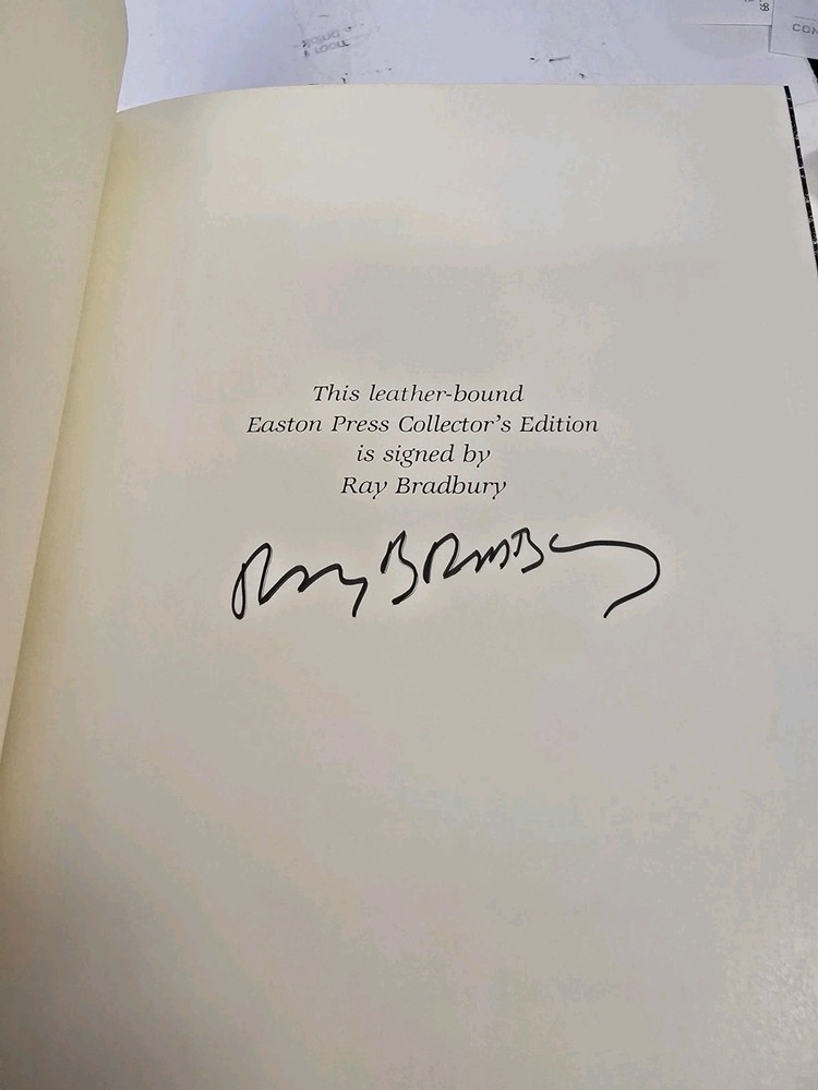 This is a rare and collectible edition of Ray Bradbury's The Martian Chronicles, published by Easton Press in 1989. This hardcover book is part of The Easton Press Masterpieces of Science Fiction series and is signed by the author. The book is in excellent condition, with no visible wear and tear, and is a great addition to any science fiction or fantasy fiction collection. The book features a leather-bound cover and is intended for young adults and adults. The narrative type is fiction and the book is written in English. This vintage edition is a must-have for any book collector or fan of Ray Bradbury's work.