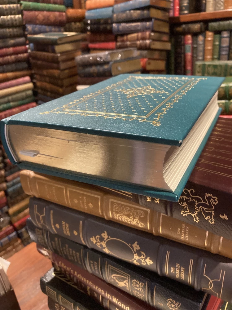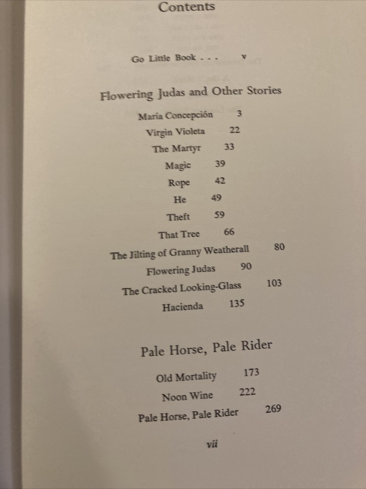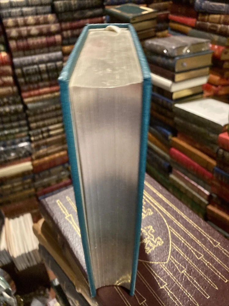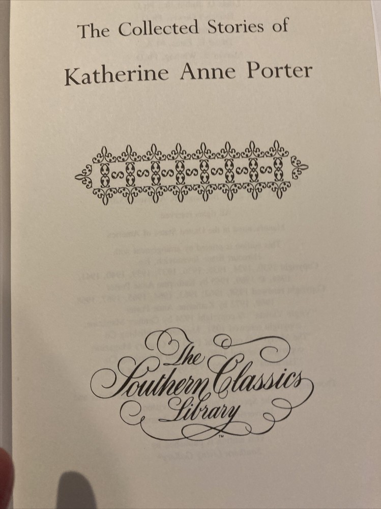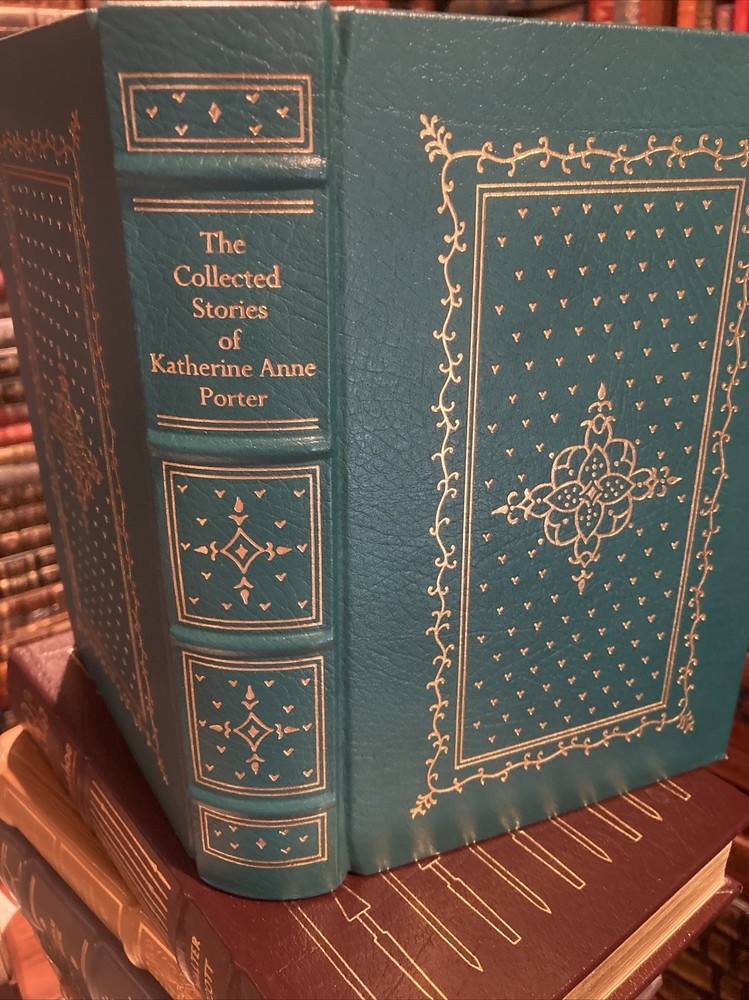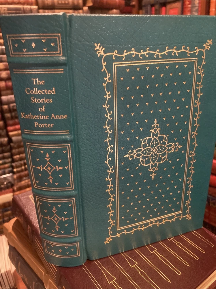 Southern Classics Library leather edition of "The Collected Stories of Katherine Anne Porter," a Limited edition, one of the SOUTHERN CLASSICS LIBRARY series, published by Oxmoor House in 1976. Bound in blue leather, the book has ivory French moire silk end leaves, acid-free paper, Symth-sewn binding, a hubbed spine, a satin book marker, gold gilding to the end leaves--- in FINE condition. Katherine Anne Porter, who lived from 1890- 1980, was an award-winning novelist and writer of short stories. This collection of short works received much critical acclaim. She is known for her penetrating insight; her work deals with dark themes such as betrayal, death and the origin of human evil. This volume includes "Flowering Judas Stories" "Pale Horse, Pale Rider," "Maria Concepcion," "Old Mortality," "Noon Wine," "The Matyr," "Theft," "Magic," "Rope," "Virgin Violeta," "That Tree," "The Cracked Looking-Glass," "Hacienda," "Virgin Violeta," "The Leaning Tower and Other Stories," and "The Downward Path to Wisdom," "A Day's Work," "Old Mortality," "He," "Holiday," "The Witness," "The Circus," "The Grave," "The Fig Tree," "The Journey," "The Old Order," "The Leaning Tower," and "The Jilting of Granny Weatherall"---Sick in bed, Granny Weatherall is being visited by Doctor Harry, a man whom she considers little more than a child. Saying there is nothing wrong with her, Granny orders the doctor to leave. He speaks in a condescending tone to her, even after she snaps at him. Granny reminds him that she’s survived more serious sicknesses before he was even born. Closing her eyes, Granny feels as if she is in a hammock. She hears the doctor and one of her daughters, Cornelia, talking about Granny’s illness. It annoys her that they are talking about her when she is within earshot. Cornelia’s goodness also irritates Granny, who says aloud that she would enjoy spanking Cornelia. The historian Alfred Crosby considered "Pale Horse, Pale Rider" to be such an exceptional depiction of the suffering caused by the influenza that he dedicated his book about the 1918 epidemic to Porter. Robert Penn Warren said: "Pale Horse, Pale Rider" was “at the top level, you know, in that collection of the world’s short novels.” The book also includes the stories "Noon Wine", "Maria Concepcion," "Virgin Violets," "The Matyr," 'Magic," "Rope," "He," "Theft," "That Tree," "The Jilting of Granny Weatherall," "Flowering Judas," "The Cracked Looking-Glass," and "Old Mortality." The title is Biblical, coming from Revelations 6:1-8. There the Four Horsemen of the Apocalypse were respectively: Conquest on a white horse; War on a red horse; Famine on a black horse; and Death mounted on a pale horse. 495 pages. I offer Combined shipping.