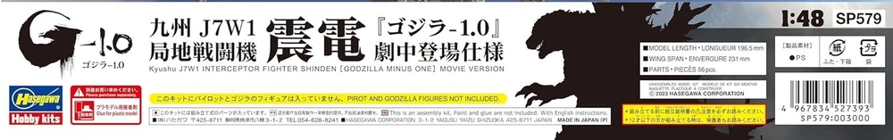 Title SP579 1/48 Hasegawa Godzilla-1.0 Japanese Navy Kyushu J7W1 Local Fighter Machine Description Brand: Hasegawa Color: Molding color Product dimensions (length x width x height): 7.5 x 9 x 3.9 in Material: plastic 1/48 scale unpainted plastic assembly kit Completed size: 7.8 x 9.1in Number of parts: 56 points Movie version special packaging specifications This is a plastic model that requires assembly and painting. Separate adhesives, tools, paints, etc. are required. New decal (Kyushu J7W1 local fighter Shinden "Godzilla-1.0" version as seen in the movie) * Please let me know if you have any questions. Also, please tell me if you have what you're looking for in Japan items. Shipping Shipping with Tracking Number & Insurance from JAPAN. This item will be shipped within handling time after receiving the payment. International Buyers - Please Note: * import duties, taxes and charges are not included in the item price or shipping charges. These charges are the buyer’s responsibility. * Please check with your country’s customs office to determine what these additional costs will be prior to bidding/buying. * These charges are normally collected by the delivering freight (shipping) company or when you pick the item up - do not confuse them for additional shipping charges.