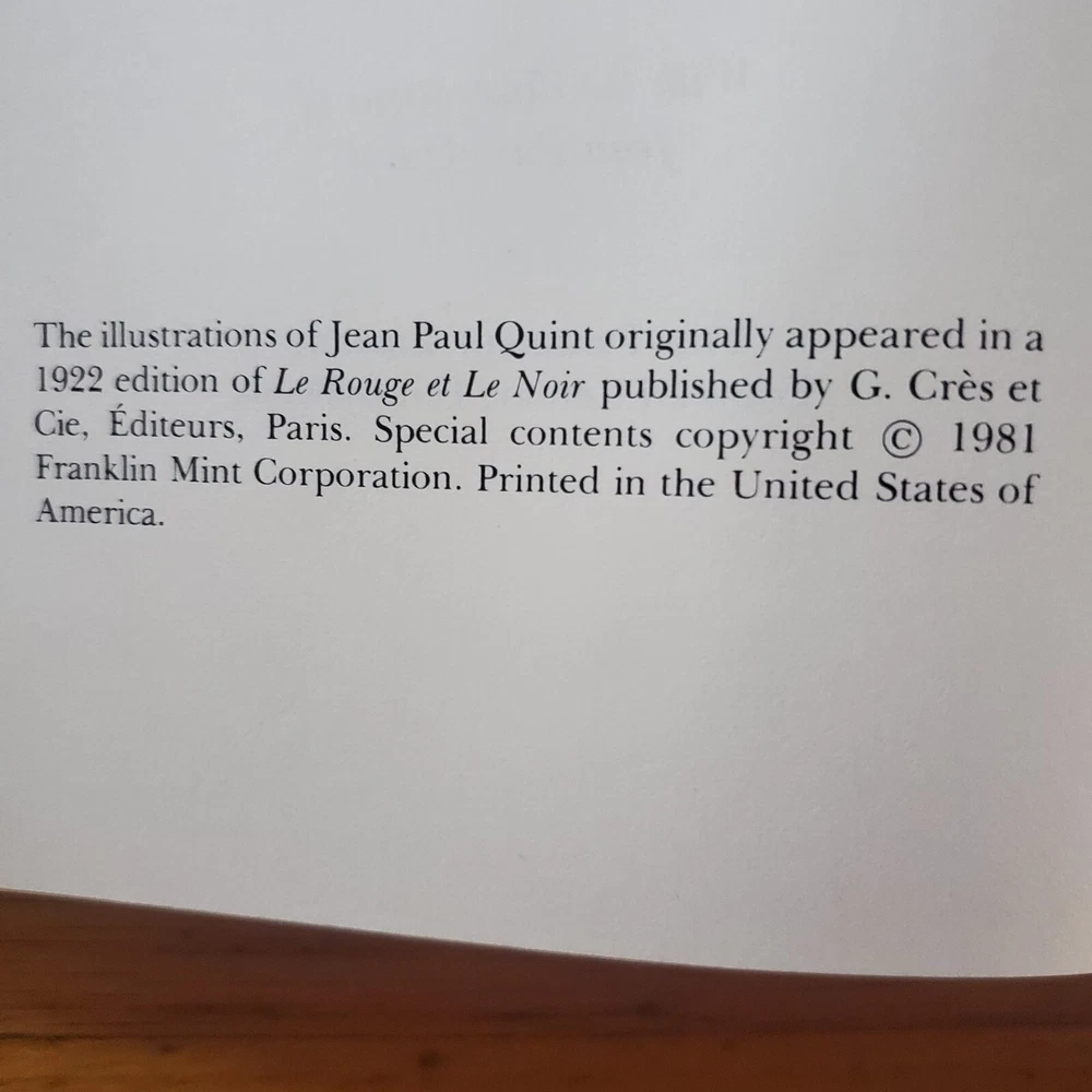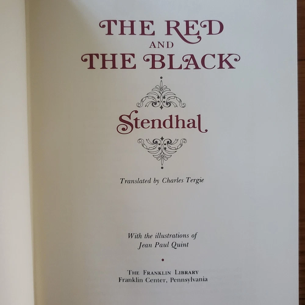Up for sale is a hardcover leather bound copy with gold gilded edges of "The Red & The Black", written by Stendahl and published by the Franklin Mint Library in 1981. As seen in the photos, the book is in very good overall condition. A great find for any literary buff. Shipping is $6.95 via US Postal Service Media Mail within the USA. Please take a look at my other listings of literary masterpieces published by the Franklin Library to add to your collection. Buy with confidence. 20+ year eBay member with 100% positive feedback. Please let me know if you have any questions.