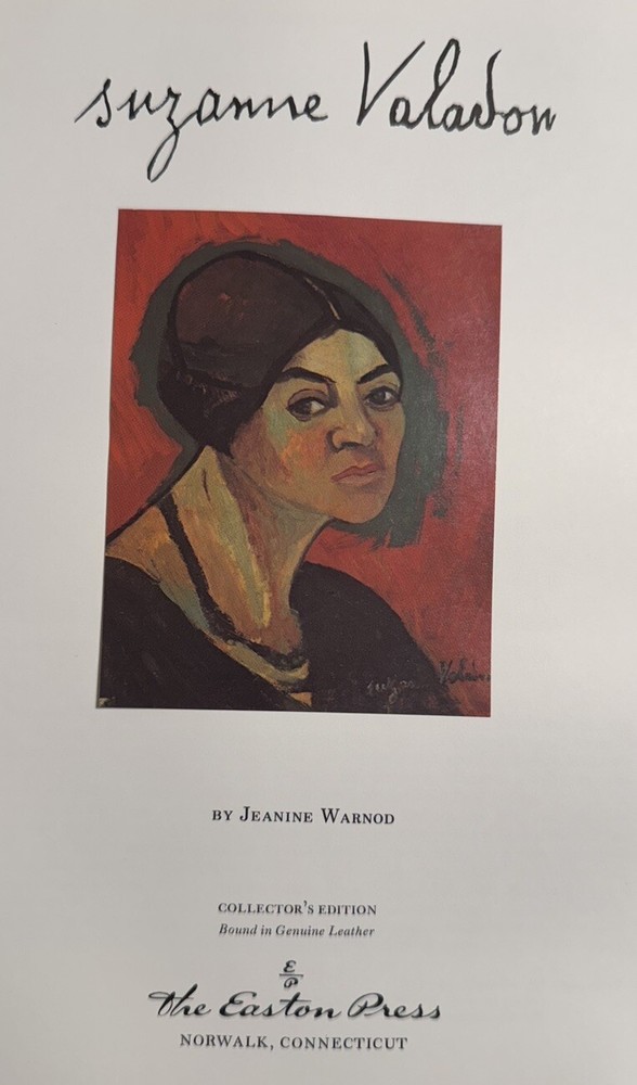 Suzanne Valadon by Jeanine Warnod Biography and art of the famous French cityscape painter. Full-color plates of the art. Published in a beautiful fine binding: Accented in 22kt gold, printed on archival acid-free paper with gilded edges, custom patterned endpapers, satin ribbon place holder, Smyth sewing & concealed muslin joints. Bound In full leather with hubbed spines. Oversized, quarto: 12.25” x 9”. Illustrated throughout. Published in 1983. First edition thus. An Easton Press 1st edition/1st printing. Condition: VERY GOOD. Some areas of rubbing on front board near right margin. First dozen pages of book have a coffee splash stain on the lower corner else NEAR FINE . No former owner bookplates, no foxing, no writing. ***A very good copy of this special deluxe Collector’s Edition*** Please view pictures to appreciate the craftsmanship and condition. Suzanne Valadon (September 1865 – April 1938) was a French painter who was born Marie-Clémentine Valadon at Bessines-sur-Gartempe, Haute-Vienne, France. In 1894, Valadon became the first woman painter admitted to the Société Nationale des Beaux-Arts. She was also the mother of painter Maurice Utrillo. As a fellow book collector, I know how frustrating it can be when items aren’t accurately described or poorly packaged for shipping. That is why I (1) take a lot of pictures and try to describe condition issues as accurately as possible and (2) pack your book purchases with the utmost care before shipping. I have been selling and buying on eBay for over 10 years and have a 100% satisfaction rating, and offer a 100% satisfaction guarantee 30-day return policy. Happy to combine shipping on multiple orders to save you money. Please follow me as I have dozens of signed Easton Press books and thousands of other collectible books to list in the coming weeks and months!