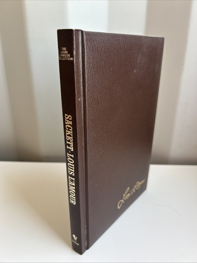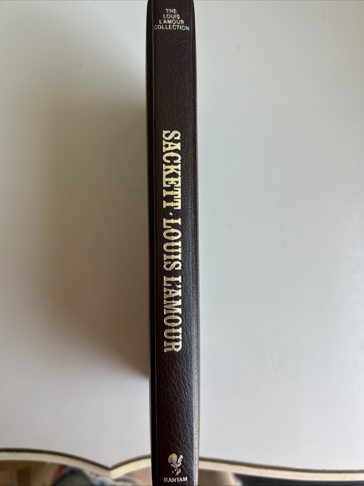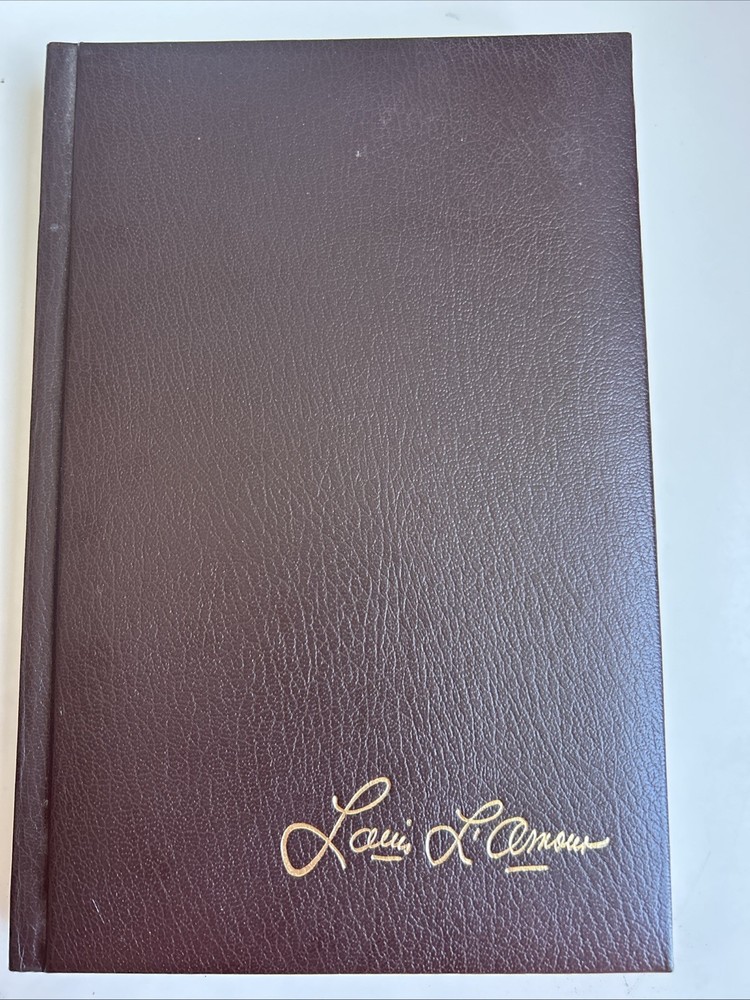 The product is a vintage leatherette-bound book titled "Down the Long Hills" by Louis L'Amour, published by Bantam Books in 1961 in the United States. This collector's edition novel is targeted towards young adults and adults who enjoy Western fiction. The book is in English language and is a valuable addition for readers looking for classic works from the 1960s era. Storage Box 34