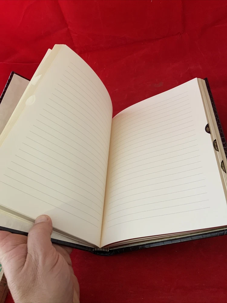 Note a few wear marks on top right in third picture . Book is unused inside . Has some page creasing from storage .