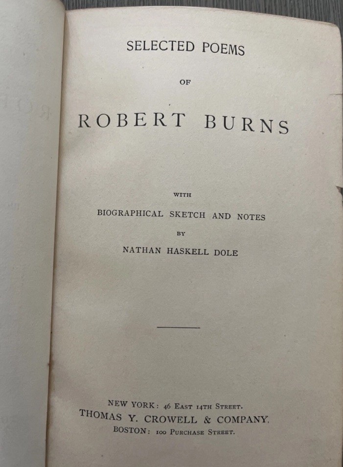 This product is a luxurious edition of select poems by Robert Burns, published in 1892 by T. Y. Crowell and Co. in New York. Bound in leather, this original edition features English language poetry by the renowned author. The collection is a valuable addition to any literature and fiction enthusiast's collection, showcasing the works of Robert Burns in a beautifully crafted format.