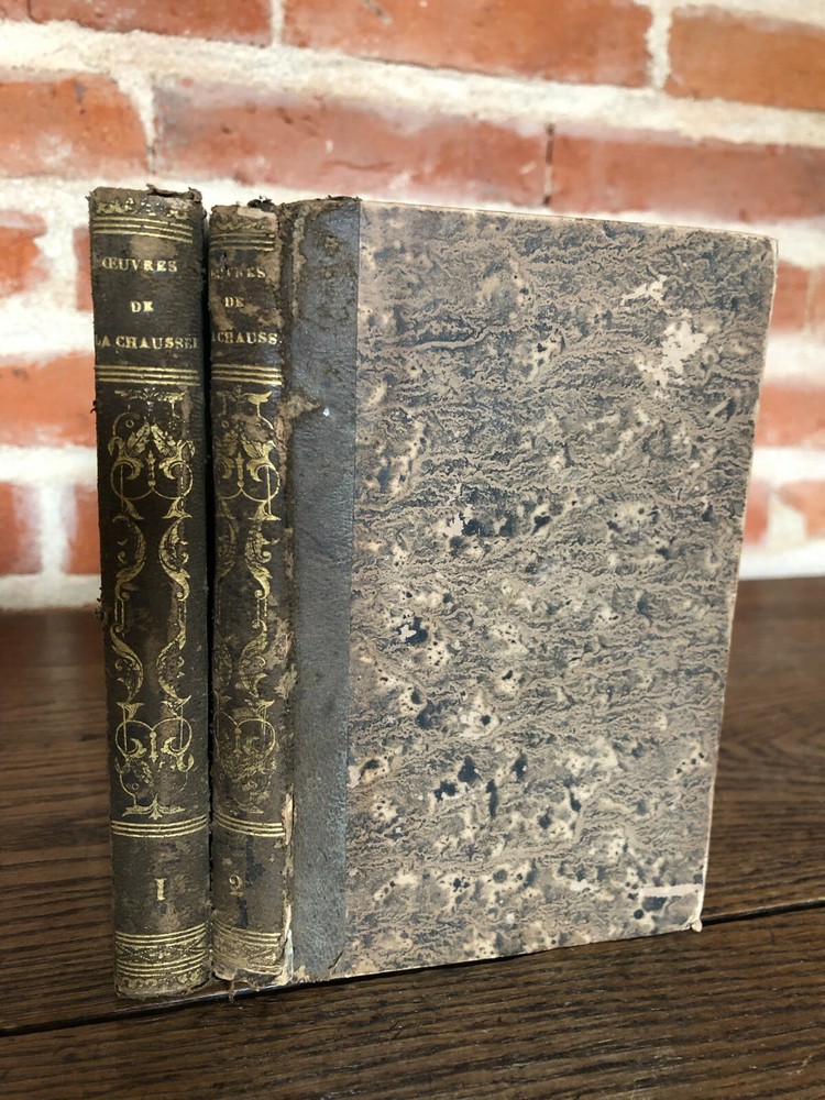 Chosen works of the roadway A stereotype edition in 2 volumes in-8 At P. Didot the elder and at Firmin Didot - 1810 253 pp. ; 227 pp. containing opinion of the publisher; Notice on the road; Fashionable prejudice; Mélanide; Love for love // the school of mothers; the governess; Clio Epiter Gold leather back binding, struck title; 15.7 x 10 cm In good condition: largely rubbed blanket, lean caps; leather partially split with hinge supports; solid interior; freckles Pierre-Claude Nivelle de la Chaussée (1692-1754), French dramatic author. Known as the creator of the tearful comedy, a theatrical genre to which he is unjustly reduced, he is the author of a rich and diverse work. Chosen works of the roadway A stereotype edition in 2 volumes in-8 At P. Didot the elder and at Firmin Didot - 1810 253 pp. ; 227 pp. containing opinion of the publisher; Notice on the road; Fashionable prejudice; Mélanide; Love for love // the school of mothers; the governess; Clio Epiter Gold leather back binding, struck title; 15.7 x 10 cm In good condition: largely rubbed blanket, lean caps; leather partially split with hinge supports; solid interior; freckles Pierre-Claude Nivelle de la Chaussée (1692-1754), French dramatic author. Known as the creator of the tearful comedy, a theatrical genre to which he is unjustly reduced, he is the author of a rich and diverse work.
