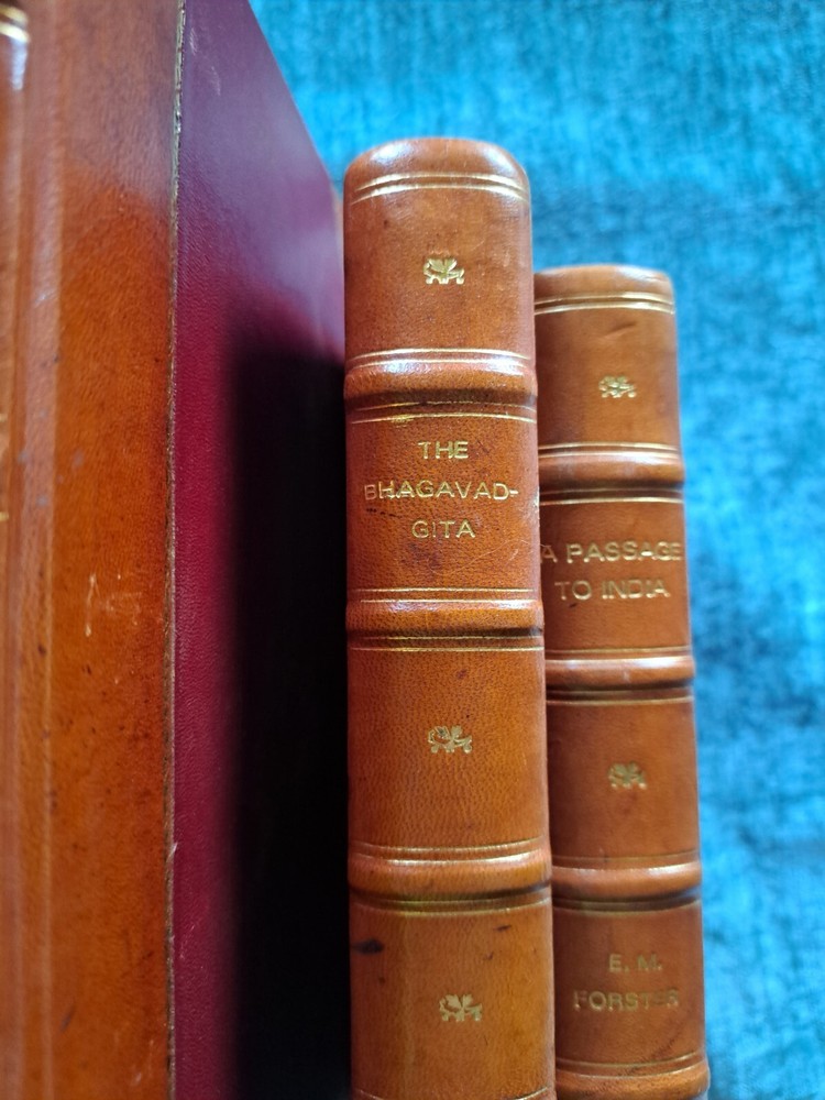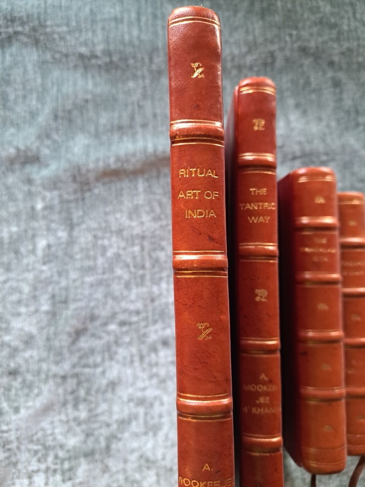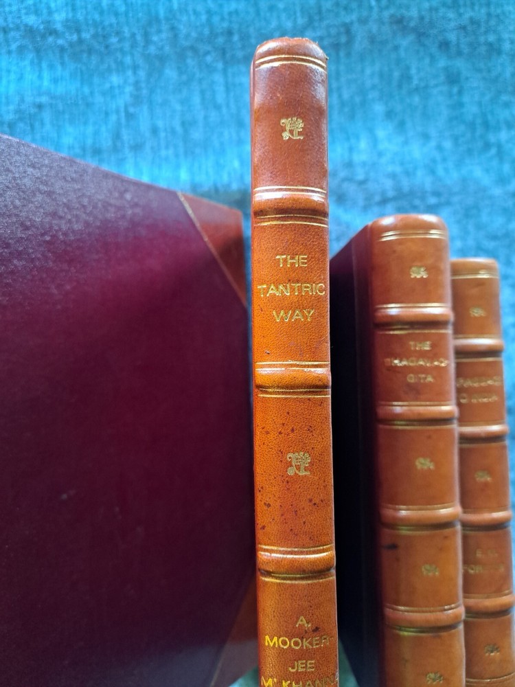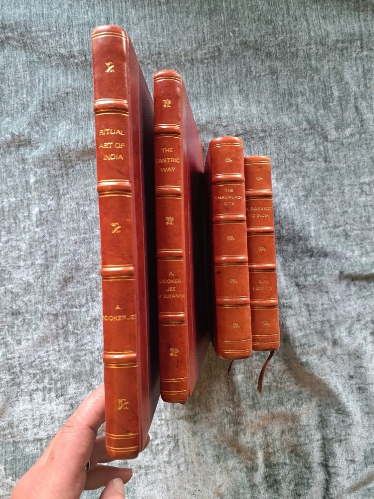Ritual Art Of India The Tantric Way The Bhagavadgita A Passage To India This set of four exquisite leather-bound books transports the reader to India through their captivating pages. The beautiful craftsmanship of the bindings adds to the overall appeal of these books, making them a must-have for any collector. The English language and subject matter make them a unique addition to any library. These books were made in India, adding to their cultural significance. Perfect for anyone interested in antiquarian and collectible books.