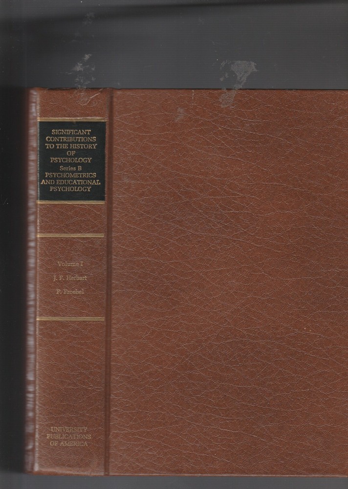 Covers lie flat with light wear, pages are clean in a tight binding Significant Contributions to the History of Psychology, 1750-1920: Series B : Psychometrics and Educational Psychology (Series B Psychometrics and Educational Psychology, Vol 1) by Herbart, J. F.; Froebel, F., Editor Dan Robinson