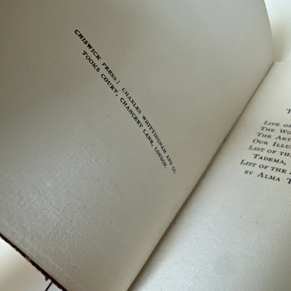 Sir Lawrence Alma Tadema R.A. Helen Zimmern Leather Book 1902 Antique. Condition is Very Good. Shipped with USPS Media Mail.