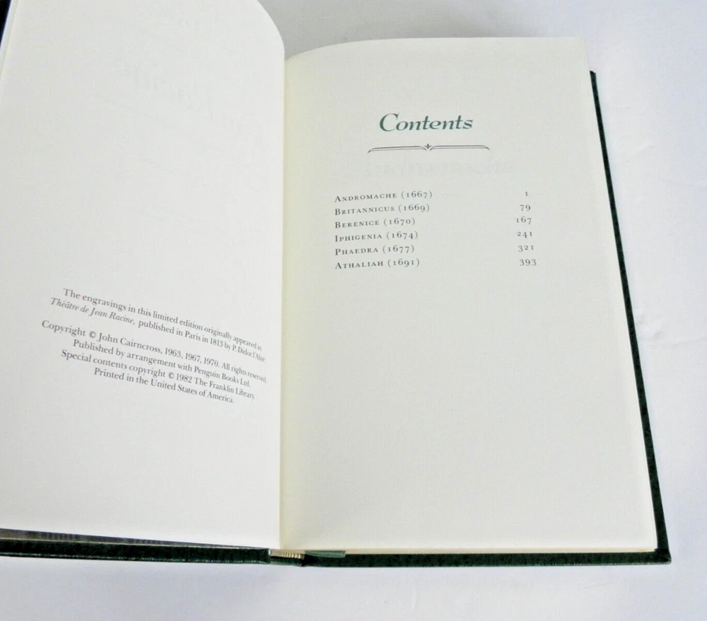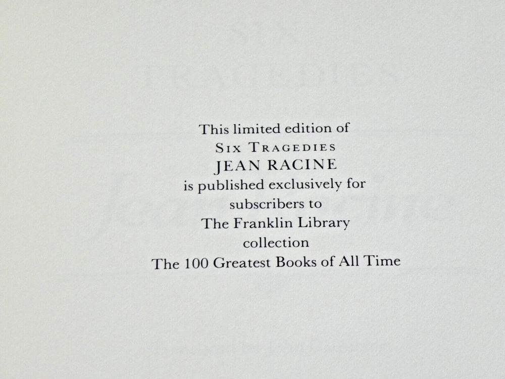 Limited Edition 1982 100 Greatest Books of All Time Collection Moire endpapers Genuine Leather Gilt edges on 3 sides Raised bands on spine Ribbon bookmark Please see pictures for more information and detail ***** This beautiful volume is in excellent condition except the moiré endpapers have fading along the edges. This volume has the appearance of never been opened (except for pictures) or read. There are no bookplates, writings. Bookends not included. Please see pictures for more information and detail. Please feel free to contact me with any questions you might have. I will be glad to take additional pictures. I tried to describe the book through words and pictures the best I can but if you are not 100% satisfied with the purchase, please know you can return the book for full refund. Boxed and packaged VERY carefully --- Will ship within 1 business day of receiving payment. Thank you for looking! <meta name="viewport" content="width=device-width, initial-scale=