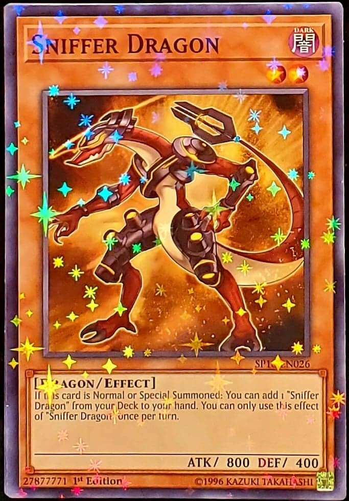 Sniffer Dragon SP18-EN026. Condition is "New". Shipped with USPS First Class. Item Description Buyers Note: Near Mint ! A great card for any collector or player. This card is in Near Mint or better. Card Name: Sniffer Dragon SP18-EN026 - 1st Edition Set: SP18- Star Pack VRAINS Quantity: 1 Edition: 1st Rarity: Starfoil Rare Condition: NM Payment Information & Terms of Sale Credit Cards: We accept Visa, MasterCard, American Express, and Discover Card through PayPal. Payments are due within 3 days of purchase date! Sorry, no exceptions! Orders are shipped within 24 hours of payment. Orders placed & paid after 12noon PST on Fridays, weekends (Saturdays & Sundays), and Holidays are shipped the following business day. Cards shipped First Class Mail are in a hard plastic top loader with a Waterproof/Tear resistant Bubble Envelope w/Delivery Confirmation, NO INSURANCE! I RECOMEND THIS FOR DELIVERIES OUTSIDE THE CONTENINTAL USA. Continental USA & select countries (Canada, Europe, Australia) Residents of Puerto Rico can only use this service. Cards shipped eBay Standard Envelope for Trading Cards up to $20 are mailed in a standard letter envelope with a hard plastic top loader w/Delivery Confirmation. Delivery can take up to 3 to 5 business days . Continental USA & select countries (Canada, Europe, Australia) THIS SERVICE IS NOT AVAILABLE TO ADDRESSES TO PUERTO RICO. Cards shipped with free shipping are mailed in a standard letter envelope with a hard plastic top loader w/Delivery Confirmation. Delivery can take up to 3 to 5 business days . Continental USA & select countries (Canada, Europe, Australia) This service is excluded for Puerto Rico . I ship Worldwide! I am not responsible for any International customs, taxes, fees, etc. It’s the buyer’s full responsibility. Give up to 30 days time for deliveries outside the Continental U.S. I have no control over administration issues of services provided by other countries and their governments. Once product leaves the U.S please be patient if delivery is delayed. Condition Guide: I do not sell any cards that are in MINT condition, the best condition that we offer is near mint. Near Mint (NM) - Cards in Near Mint condition show minimal to no wear from shuffling, play or handling and can have a nearly unmarked surface, crisp corners and unblemished edges outside of a few minimal flaws. A Near Mint card may have a tiny edge nick or a tiny scratch or two, but overall look nearly un-played with no major defects or flaws. Lightly Played (LP) - Cards in Lightly Played condition may have minor border or corner wear or even just slight scuffs or scratches. There are no major defects such as water damage, bends or issues with the structural integrity of the card. Noticeable imperfections are okay, but none should be too severe or at too high a volume. Moderately Played (MP) - Cards in Moderately Played condition exhibit condition issues visible at a casual glance. Cards in Moderately Played condition can have border wear, corner wear, scratching or scuffing, creases or whitening, minor dirt buildup or any combination of mild examples of these marks. A Moderately Played card may have some form of a more major marking, such as spot water damage or creasing that doesnʼt affect card integrity, but not in combination with other issues such as scratches, scuffs or border/edge wear and not impacting a large area of the card. Heavily Played (HP) - Cards in Heavily Played condition show a severe amount of wear. Heavily Played condition can include cards that have major creasing, major whitening, major border wear or any combination of those flaws. (These flaws cannot prevent the card from being tournament playable when sleeved.) Damaged - Cards in Damaged condition can exhibit a tear, bend or crease that may make the card illegal for tournament play, even in a sleeve. Cards in Damaged condition may have extreme border wear, extreme corner wear, heavy scratching or scuffing, folds, creases or tears or other damages that impacts the structural integrity of the card.