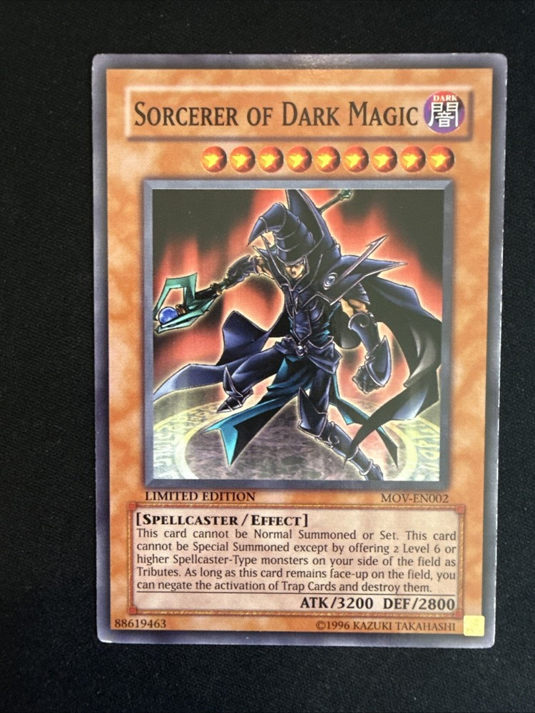 The Sorcerer of Dark Magic card from the Yu-Gi-Oh! The Dark Side of Dimensions Movie Pack Promo Set is a powerful spellcaster with 2800 defense and 3200 attack power. This limited edition English card, manufactured by Konami, is a must-have for fans of the Yu-Gi-Oh! TCG. With its dark attribute and effect abilities, this common/short print card is a valuable addition to any card collection.