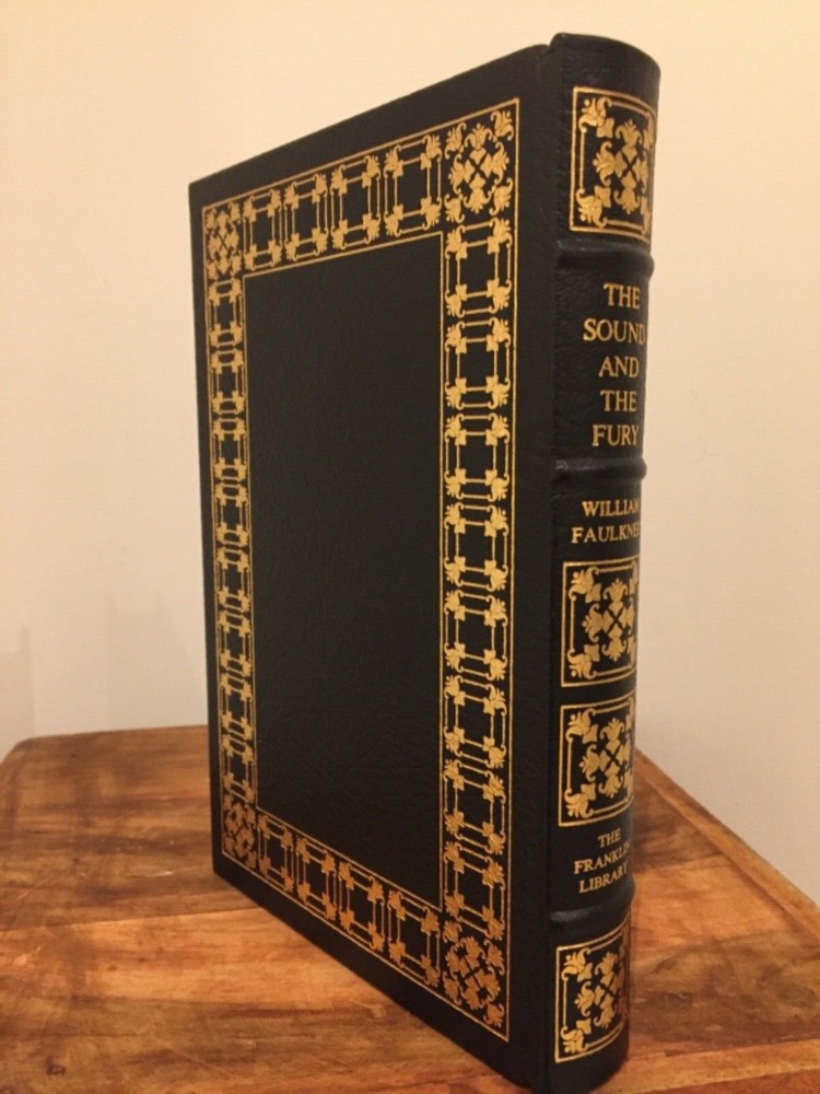 This stunning Franklin Library edition of *The Sound and the Fury* is a collector's dream! The genuine leather binding is flawless, with no wear, fading, or damage—truly pristine. The gold gilding has slight unevenness, but it doesn’t detract from the book’s elegance. Never opened or displayed, it feels brand new. A must-have for Faulkner fans and lovers of fine editions!