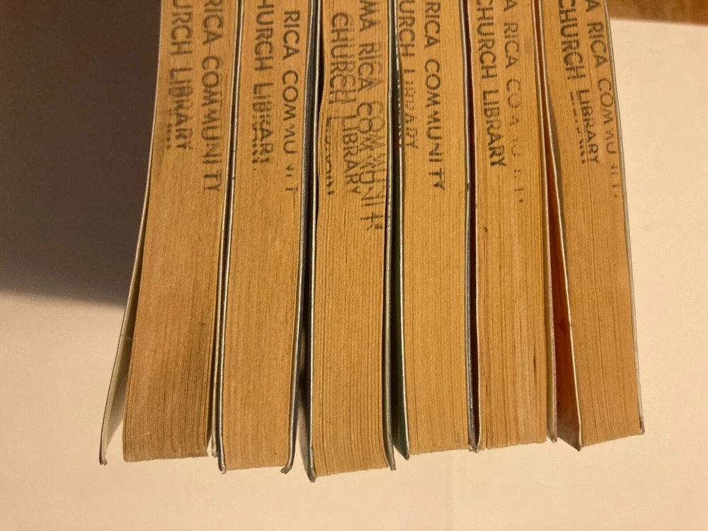 Listing is for one book, or have the option to buy multiple at discount. Bible Story Comics, lot of 13, # 2 3 4 5 6 7 9 10 11 14 20 22 and 24. Some grime, a couple have a bit of damage other than wage related wear and those books are noted in photos. General condition is good with age, a few have fair condition with a tear or two, a few stains and a bit of separation. A Bible Study of Ephesians, all good and tidy, one disc has a bit of grime all others are spiffy. Anika Scott Series Lot of 3 by Rispin: # 1, 2, & 5 As Is Condition Appomattox Saga - Morris Lot of 2 Land of the Shadow & Out of the Whirlwind Crystals Made Easy by Hall, Judy (paperback) “very nice condition, has a tiny dot of coffee on top of page edges.” Stock photo used for listing. Good “ very nice condition, has a tiny dot of coffee on top of page edges. ” Gilbert Morris Books, Lot of 7, Ex Lib, Good but used with general all over wear. The Hidden Book in the Bible - good, tidy condition, paperback version. The Holy Bible - Biblia Bilingue, KJV - Santa Biblia - Holman - GUC: La Biblia está en buenas condiciones, pero tiene algunos detalles destacados, fotografía de archivo. Biblia bilingüe que une la elegancia de la Reina-Valera 1960 con la belleza poetica de la version inglesa King James. Practico tama?o personal. Bilingual Bible that combines the elegance of the Reina-Valera 1960 and the poetic beauty of the King James Version. Convenient personal size. The Holy Bible Tyndale Brown Tu-Tone, NLT presentation, gently used, does have some highlighting on some pages, fairly clean and tidy. The Holy Bible - NIV Bible Red Letter Brown Leather Zondervan, in good condition but has some underlining and some highlighting, nice otherwise. Identified as Italian Duo-Tone. Stock photo for reference. Lot of 6 (5-10) Holly's Heart, Christian Beverly Lewis PB Books Ages 11-14 Vtg, As shown in photos. All in good, but older condition, one book has a little separation inside. All books are clear coated with protective film, contain check out cards, coding and church stamp Joan of Arc, Jewkes & Landfield, Early Copy Good Cond. Vtg , “ In good vintage condition, some spots and aging. ” Queen of the Dark Chamber: The Story of Christiana Tsai (Signed) Vintage HC/X Library - Item specifics: C ondition Good “Good with a little bit of church library wear, ex library/signed/stamped” Format Hardcover Language English Book Title Queen of the Dark Chamber: The Story of Christiana Tsai (Signed) Illustrator Ellen L. Drummond Signed Yes Ex Libris Yes Author Christiana Tsai; Ellen L. Drummond Publisher The Moody Bible Institute of Chicago Vintage Yes ISBN DoesNotApply The Way of Life is in fair condition with some tanning, rubbing and creases as shown in photos. Some of the Vintage/Antique Books have heavier wear as they were used in a course of study there are pencil (and a little bit of pen) underlined text and annotations. Journey of Souls has some wear to the covers otherwise good. Left Behind Kids Series, Paperback, Lot of 21 Books #1-24 minus 2,3,5 Acceptable, Appear in good shape, but some wear from just aging (tanning), didn't see any significant wear but I didn't look at each and every page. The front and back are covered with laminate, books have church stamp and check out cards in all. Have units 1-24 except for #2,#3 & #5 Missing from sequence Sikh Stores - “Books are vintage, book one has more wear than book two.” Transcendental Mediation Hard Cover has damage to the dust jacket as shown in photos. Tao the Golden Gate/ Bhagwan Shree Rajneesh / VOLUME 1 Acceptable All my books are plastic wrapped and taped; wrapped in cardboard prior to shipping.