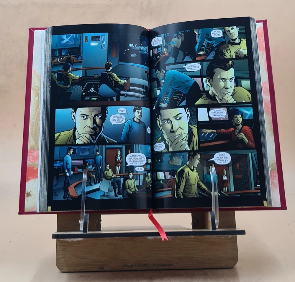 GYAN BOOKS INTRODUCING A REMARKABLE LEATHER-BOUND EDITION, METICULOUSLY CRAFTED BY THE ESTEEMED INSTITUTION " RARE BIBLIO". This title holds the distinction of being a Bestseller, highly praised by readers across the GLOBE. We are thrilled to present this literary gem exclusively to our elite readers, meticulously encased in our one-of-a-kind Premium Leather Binding . Following your order, we purchase the book from the original publisher/distributor and embark on the process of rebinding to elevate this book to a Luxurious Reading Style. A UNIQUE LEATHER-BOUND BOOK FOR ELITE READERS/COLLECTORS OF OLD RARE AND BESTSELLING BOOKS. For the Binding, we use GENUINE LEATHER , graced with opulent GOLDEN LEAF DETAILING on the SPINE , FRONT COVER , AND BACK COVER , ADDED BY EDGE GILDING . ABOUT US ★ We deal into reprinting of the master pieces crafted by authors around the world. ★ We are proud to say that we have a collection of over 25 million books and our collection includes books that are as old as 200 years and hence are considered as RARE BOOKS. ★ We are pioneer in this field having experience of 40 years. ★ We also undertake printing and Leather Binding jobs of other books. ★ Thesis printing and Leather Binding is one of our important Service ★ Many publishers and author approach us for their books to bind in our Unique leather binding format for their special customers. ★ Our craftsmen are active in this job since generations. ★ Restoration of old books is our expertise ★ We are known by our Customization options. ★ We have many leather color options in our bucket. ★ The whole process is done manually so that it gives you the same feeling of old book. OFFERS & SPECIALIZATION: ★ SPECIAL DISCOUNT FOR BULK ORDERS, PLEASE CONTACT US. ★ CHOOSE ANY LEATHER COLOR OF YOUR CHOICE WITHOUT ANY EXTRA CHARGES, JUST CLICK ON IMAGES FOR OPTIONAL COLORS AND INFORM US YOUR CHOICE THROUGH MAIL WITH COLOR CODE. ★ WE OFFER A DIVERSE RANGE OF LEATHER COLORS, INCLUDING RED , GREEN , BLUE , BLACK, MAGENTA , YELLOW , TAN . WE ALSO OFFER MULTI-COLOR LABELS WITH THESE BEAUTIFUL BOOKS ON SPECIAL REQUEST. ★ AN ORIGINAL LEATHER IS BEING USED FOR BINDING THIS BOOK WITH GOLDEN LEAF PRINTING AND DESIGNING ON SPINE, FRONT AND BACK OF THE BOOK WITH EDGE GILDING . Points to note before booking order: ★ In case of multi volume sets, please note that the above listing is for a single volume only. (To order multiple volumes, please contact us separately). ★ We urge you to appreciate that our Leather-Bound Books are Genuine works of art and are Handcrafted by our Professional Craftsmen. Thus, requiring time and care to reach the pinnacle of excellence. ★ We Prepare the Book after receiving the Order. ★ We usually take 30 business days as handling time to dispatch shipment. ★ We request you to understand that these leather-bound books are work of art and hence require time to go through different process to be the master pieces that they are. ★ We usually take 30 business days as handling time to dispatch shipment. We consider special request for a special occasion. ★ Craftsman based in India, prepared this book and shipped from different stock locations around the Globe. Product Details: - ★ Complete Title: Star Trek Library Collection, Vol. 1 by Johnson, Mike & Orci, Roberto & Kurtzman, Alex [PREMIUM LEATHER BOUND] ★ Author: Johnson, Mike & Orci, Roberto & Kurtzman, Alex ★ Language: English ★ No. Of Pages: 296 ★ Year: 2023 ★ We provide ?Extra customization*? on request with additional charges. ★ We also undertake printing and Leather Binding of all the books. ★ Product Disclaimer: Please be aware that because leather is a natural material, slight discoloration or change in texture may be visible. About the Book: - Delve into the history of over 400 issues of IDW's Star Trek comics! Discover series you may have missed or revisit some old favorites from the Original Series, The Next Generation, Kelvin Timeline, and more! The Star Trek Library Collection is a comprehensive line of books that will collect every comic series published by IDW! Starting with the Kelvin Timeline and the prequel that led into the 2009 Star Trek movie, Countdown details the origin of the mysterious Nero, the Romulan that ultimately threatened the survival of the entire universe! Then, in Nero, find out what he did in those cold, dark, lonely years spent waiting for his nemesis to arrive. Both brought to you by Roberto Orci, Alex Kurztman, Mike Johnson, Tim Jones, and David Messina. In Spock: Reflections, the follow-up to Countdown, discover what could drive a man to abandon all he knows and go live with the Federation's sworn enemy, his real motivations, and what brought him to this place in his life. A Vulcan on Romulus? Absurd! Or is it? By Scott Tipton, David Tipton, and David Messina.