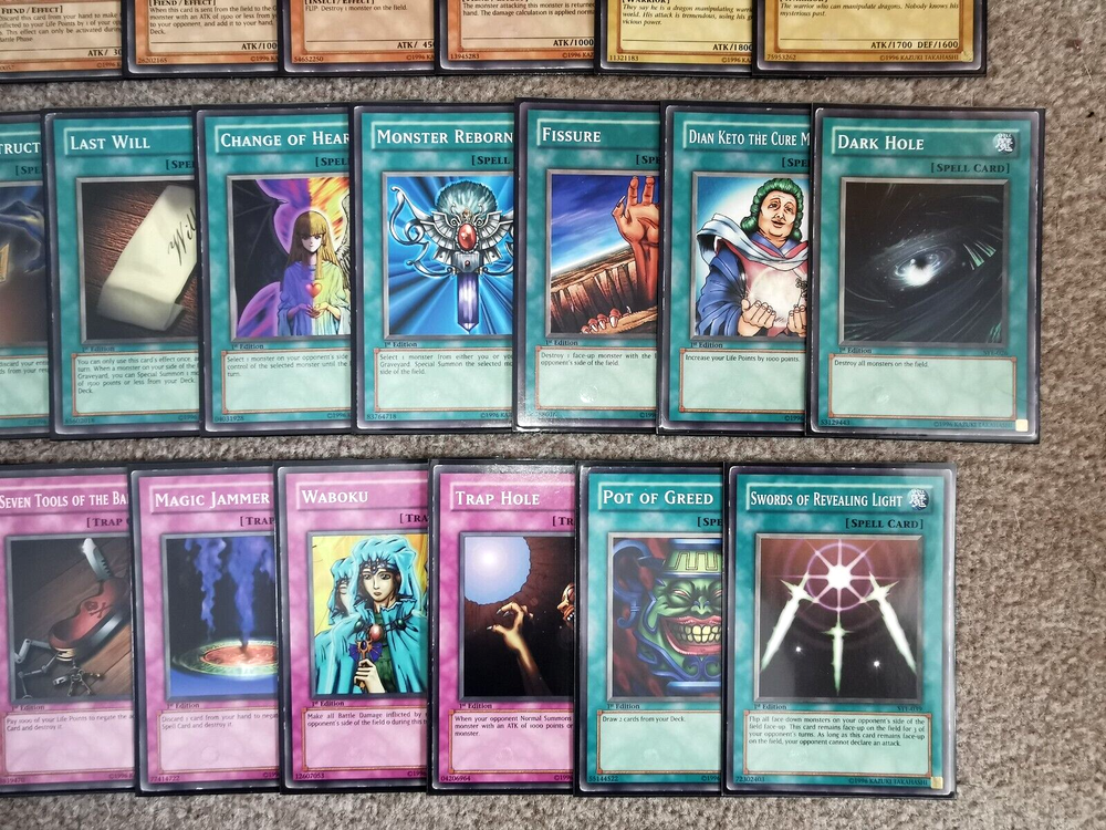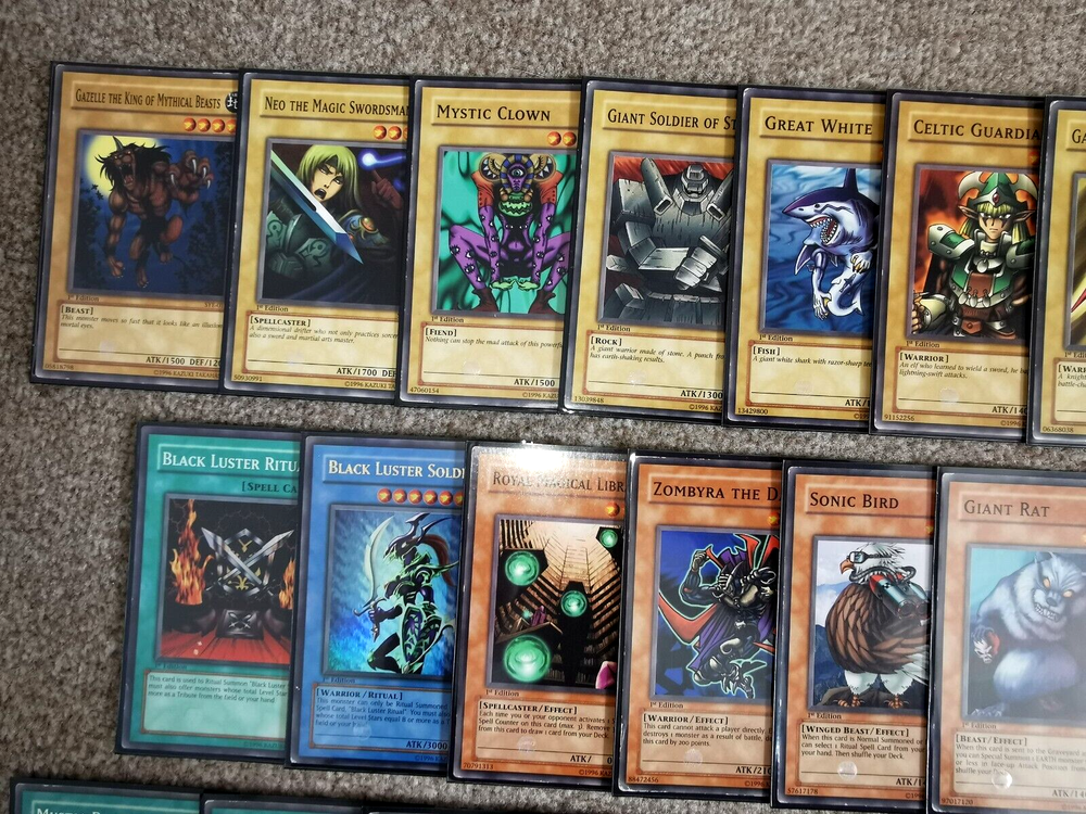 Home New Arrivals Feedback Contact Starter Deck Yugi Evolution *1ST EDITION*: Dark Magician/Black Luster Soldier etc... Item Description Good day Sir/Madam! The card(s) you are viewing now will be in Varying condition Complete Yugi Evolution Starter Deck :) ALL CARDS ARE 1ST EDITION All cards are in different conditions but as you can see...most are LP. All come in new Black Ultra Pro Sleeves. All conditions stated in my listings are my opinion of the card, which may differ from somebody else. When I say 'Mint condition', I believe it is grade worthy, please message me first if that is what you are after and I will double check any card for you so nobody is disappointed :) Please have a look at my other swag! XD The first picture will be the 1st card (set of cards) you will receive!!! A ny extra pictures are to show you the other cards for sale (Picture order is consistent with the card(s) I will be posting to you). So if I have quantity of 3 for example, and 1 has sold, you will receive the card(s) in the 2nd photo(s) :) CHECK OUT MY GRADING SYSTEM BELOW ^_^ MINT - No damage......MINTY FRESH! (message me if it needs to be grade worthy) NEAR MINT - Close to Mint, only very slight wear or any very small imperfection(s) VERY GOOD - Visible wear on the card but no major wear GOOD - Obvious wear but nothing unplayable USED - Still playable but in pretty bad shape, bad condition Always message me if unsure of condition :P Please have a look at my other swag! :) Message me if i can help with anything at all! ***I WILL BUY YOUR YU-GI-OH CARDS !!!*** See Other Items Shipping Always very well packaged!! I always post the same day or next working day depending on how late in the day the order is placed :) Message me if you have any specific requirements for postage! I am not responsible for customs charges for oversees buyers Payment I accept all types of payments (Paypal, Credit/debit card, Apple/Samsung pay etc...) Returns I will accept any returns for items not as described :) I will also accept returns on items where you have simply changed your mind. However I would have to request that you pay any postage and fees :) Thanks for looking Thank You for your purchase Copyright All Rights Reserved - Template Created by ZTproject