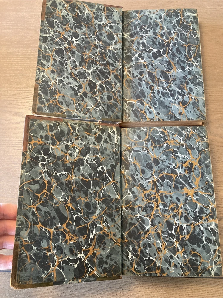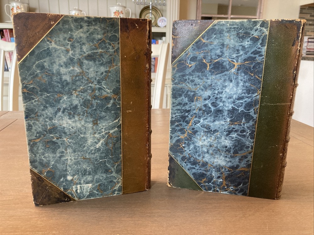 Printed in Oxford, fine leather bindings with lightly worn hinges, these books are holding up well. Marbled decorative boards and endpapers, the original volume is a bit under 400 pages and the responses is a bit under 500. Both books are 6 x 9. Stamped Stikeman and Company on the FFEP. International shipping is available and if you have any questions I’m always happy to help. Thanks very much.
