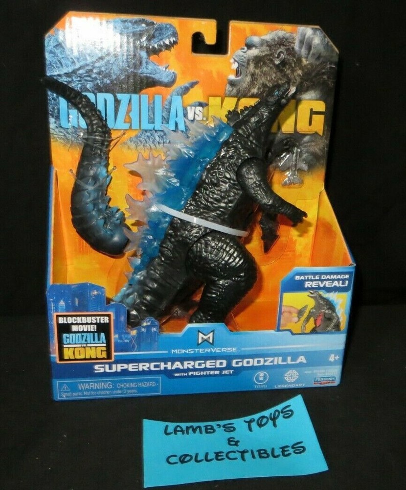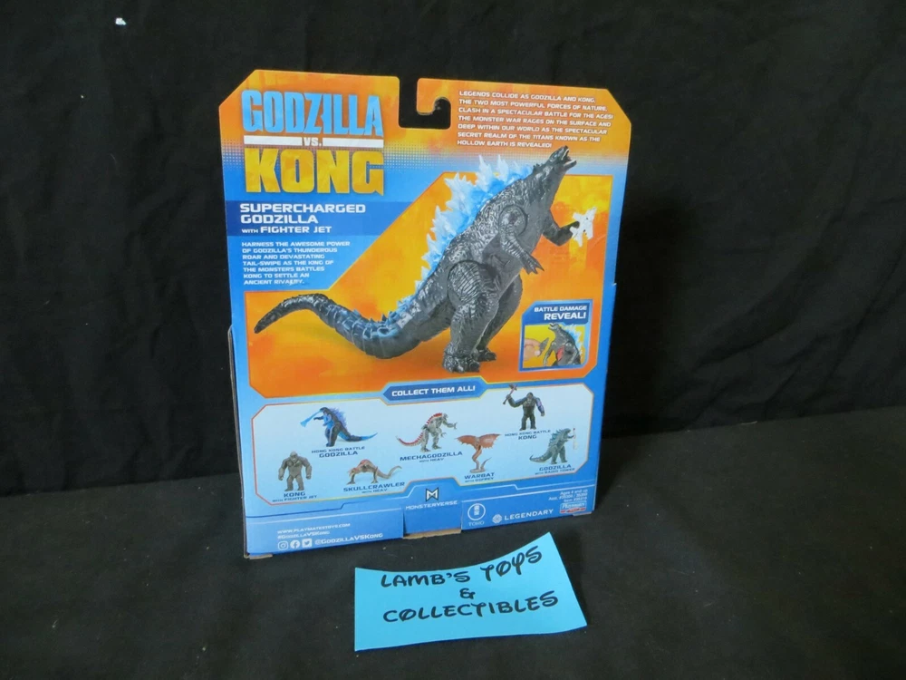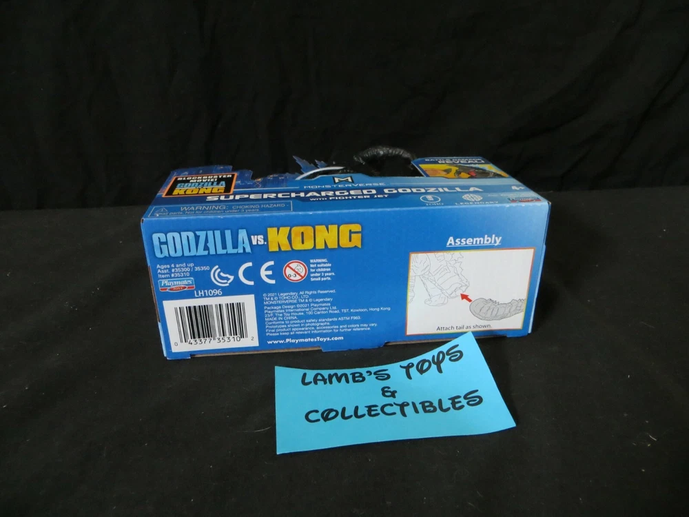 Supercharged Godzilla Monsterverse Godzilla vs Kong Legendary Playmates Toho toy approximate 6.5" tall measurement approximate includes fighter jet tail requires assembly please note: Ebay item details incorrectly show professional grading, this item is not and has not been professionally graded Please review all photos, policies & contact us with any questions. Thank You! Lamb’s Collectibles I nternational Buyers Import duties, taxes, & charges are not included in item price or shipping cost & are buyer's responsibility. Customers report packages arrive safely & quickly.