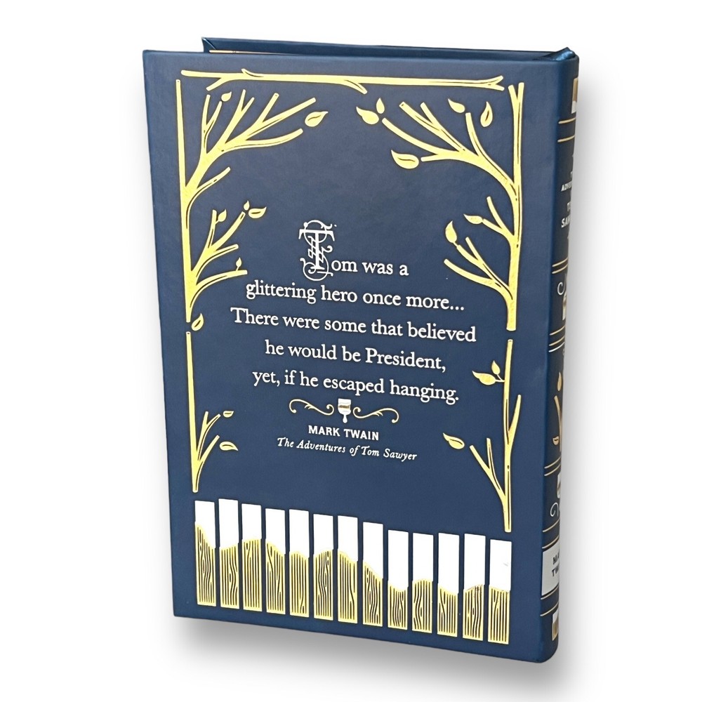 This volume is one of Collectible Editions classics features authoritative text in an exquisitely designed foil-stamped binding, with distinctive colored edging and an attractive ribbon bookmark. That rascal Tom Sawyer is having quite a time! In just a few months' time he's gotten engaged to the new girl in town, witnessed a murder, stayed in a haunted house, found buried treasure, been lost in a cave and watched his own funeral. But that's Tom for you an unpredictable mix of youthful innocence and mischief. First published in 1876, Mark Twain's The Adventures of Tom Sawyer has delighted generations of readers who believe that they themselves have a little bit of Tom's spunk and irascibility in them. Leather Editions Dimensions - 8.4 H x 5.7 W x 1.1 D