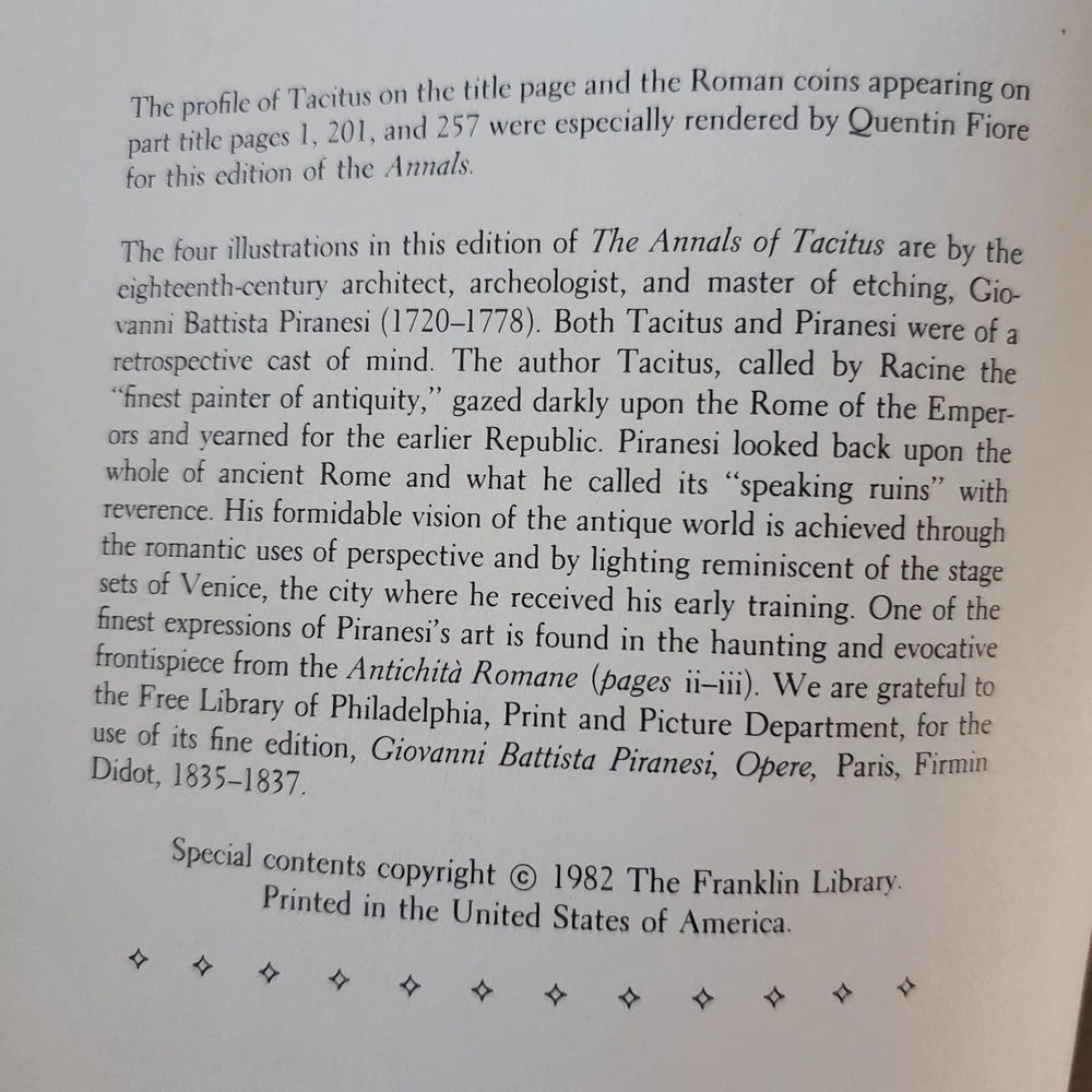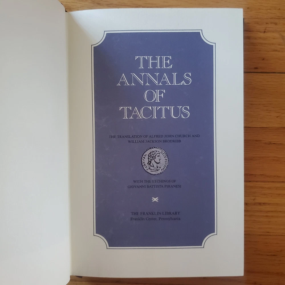 Up for sale is a hardcover leather bound copy with gold gilded edges of "The Annals of Tacitus", published by the Franklin Mint Library in 1982. As seen in the photos, the book is in very good overall condition. A great find for any literary buff. Shipping is $6.95 via US Postal Service Media Mail within the USA. Please take a look at my other listings of literary masterpieces published by the Franklin Library to add to your collection. Buy with confidence. 20+ year eBay member with 100% positive feedback. Please let me know if you have any questions.