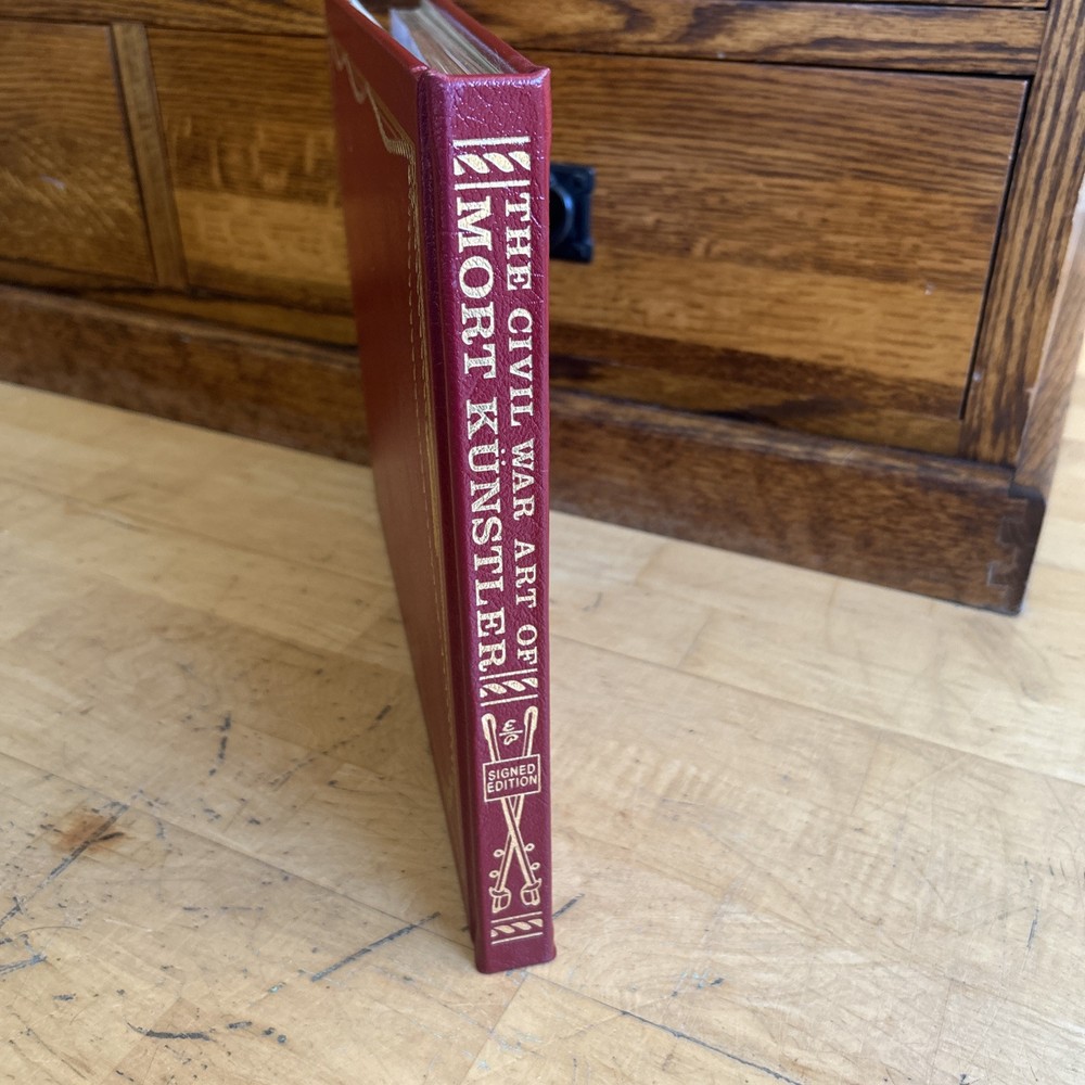 This Easton Press book titled "THE CIVIL WAR ART OF MORT KUNSTLER" is a signed copy in like new condition. The leather binding and gilt edges make for a stunning addition to any collection. This book features the illustrations of Mort Kunstler and covers the topic of the Civil War from 1861-65. It is written in English and was published in Norwalk CT by Easton Press. It falls under the categories of Books & Magazines and Antiquarian & Collectible. The special attributes of this book include being signed by the author and being illustrated. Its subject matter is related to Military & War. This book is awesome! This is like brand new, the book plate is attached but not written on. It has not been read and the spine is not broke.