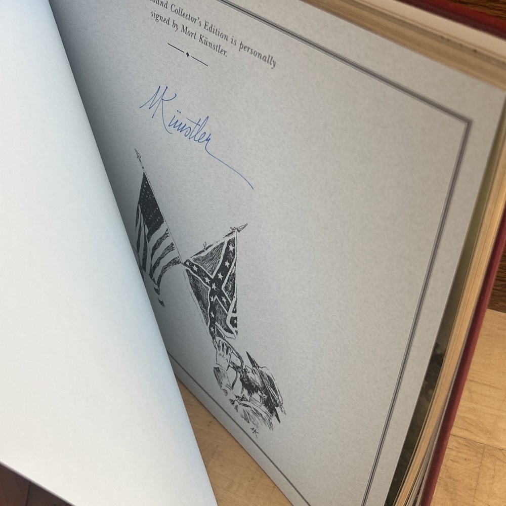 This stunning Easton Press edition is a must-have for Civil War enthusiasts and art collectors alike. The signed copy features Mort Künstler's breathtaking illustrations, beautifully preserved in like-new condition with luxurious leather binding and gilt edges. The detailed artwork vividly brings history to life, capturing pivotal moments from 1861-1865. A true treasure for any serious collector, it elevates any bookshelf with its timeless elegance and historical significance. Perfect for those who appreciate fine craftsmanship and American history.