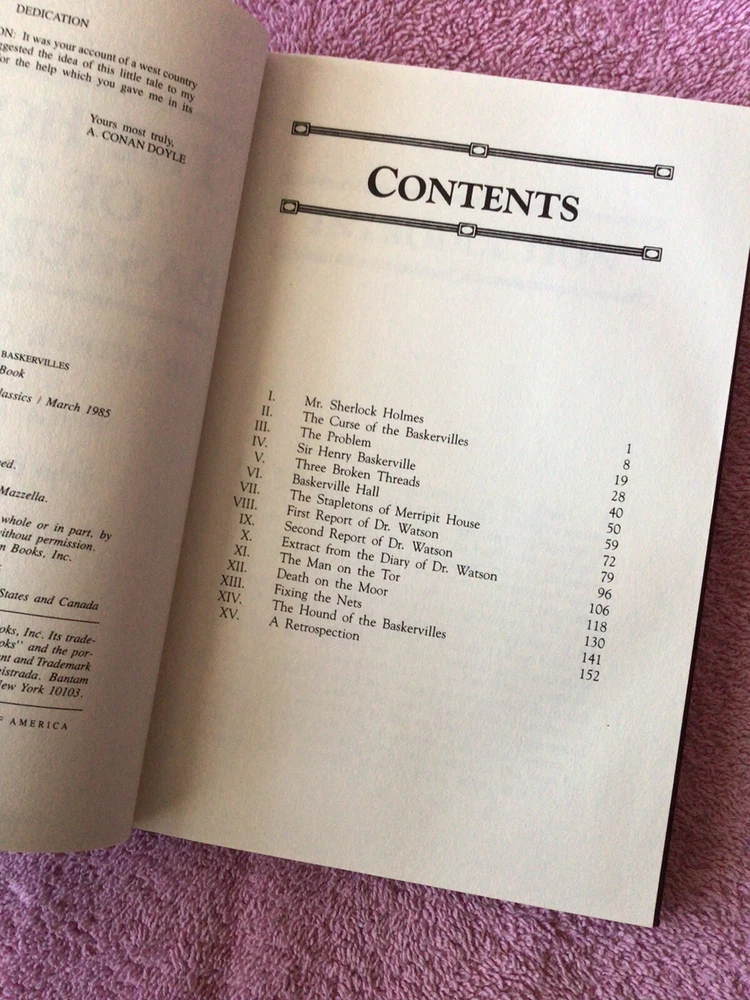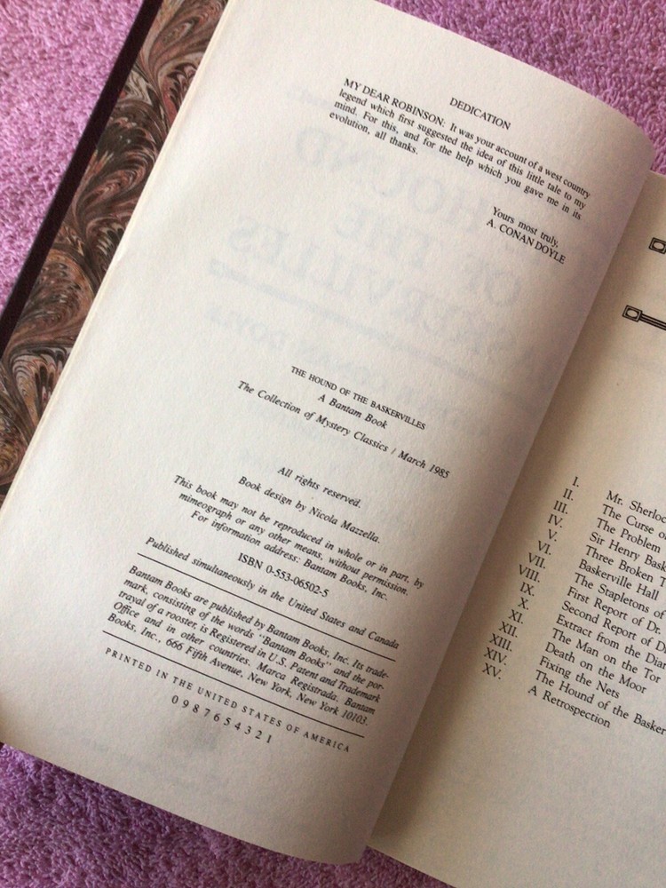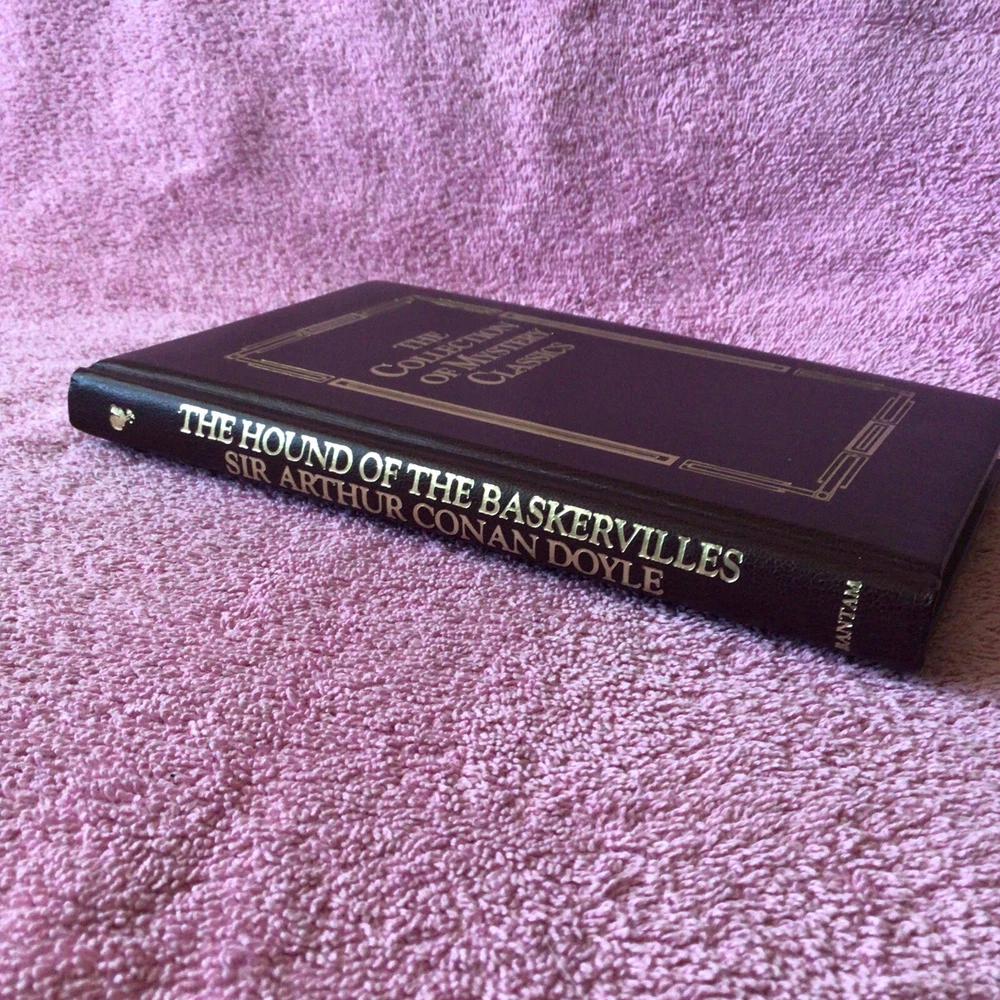 The Collection of Mystery Classics: The Hound of the Baskervilles by Sir Arthur Conan Doyle. Hardcover, First Edition, 1985, with a Leather type cover. Like New condition. Please see my photos for more information. This book will be mailed ONLY to your address listed on eBay, using USPS media mail. Thank You for considering my item. ********************** The product is a vintage hardcover edition of "The Hound of the Baskervilles" by Arthur Conan Doyle, part of a Collection of Mystery Classics series. Published by Bantam Books in 1985, this first edition features leather bound covers with a height of 9 inches and a length of 6 inches. With 165 pages, it is intended for young adults and adults, and the original English language publication is from the United States.