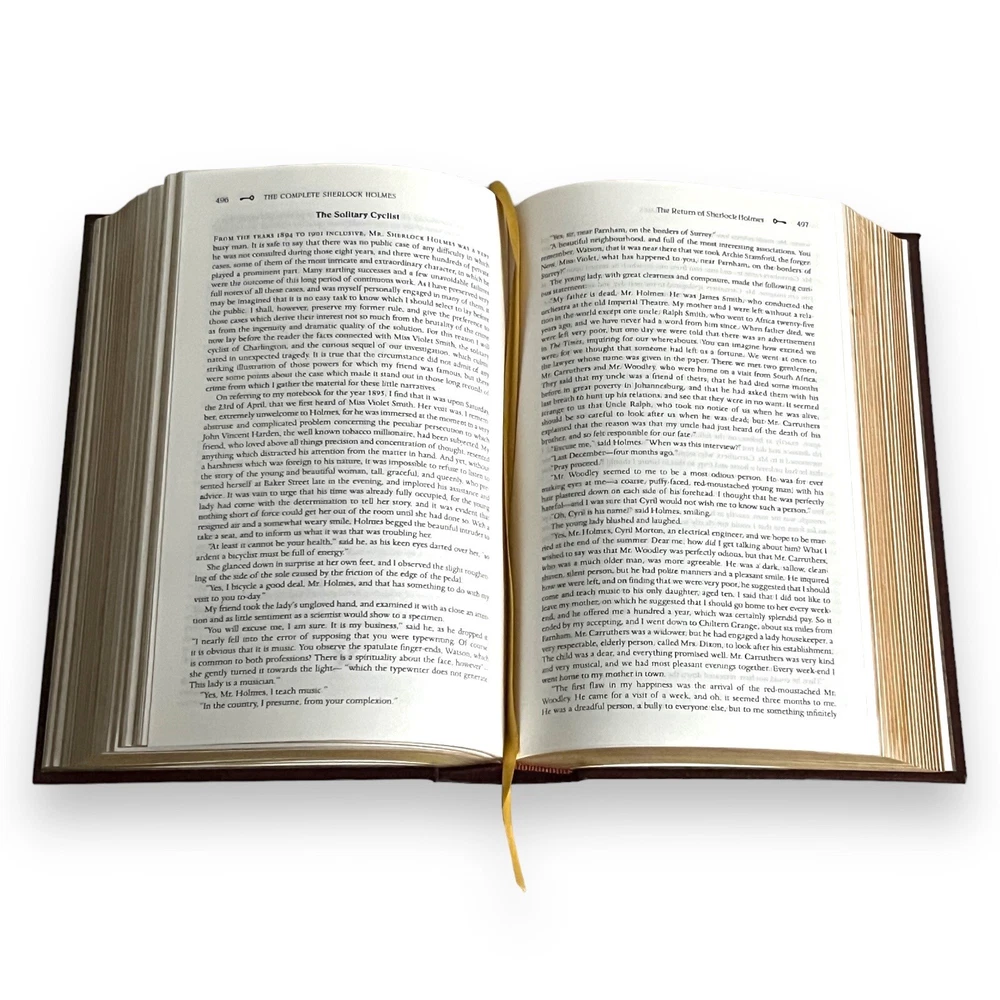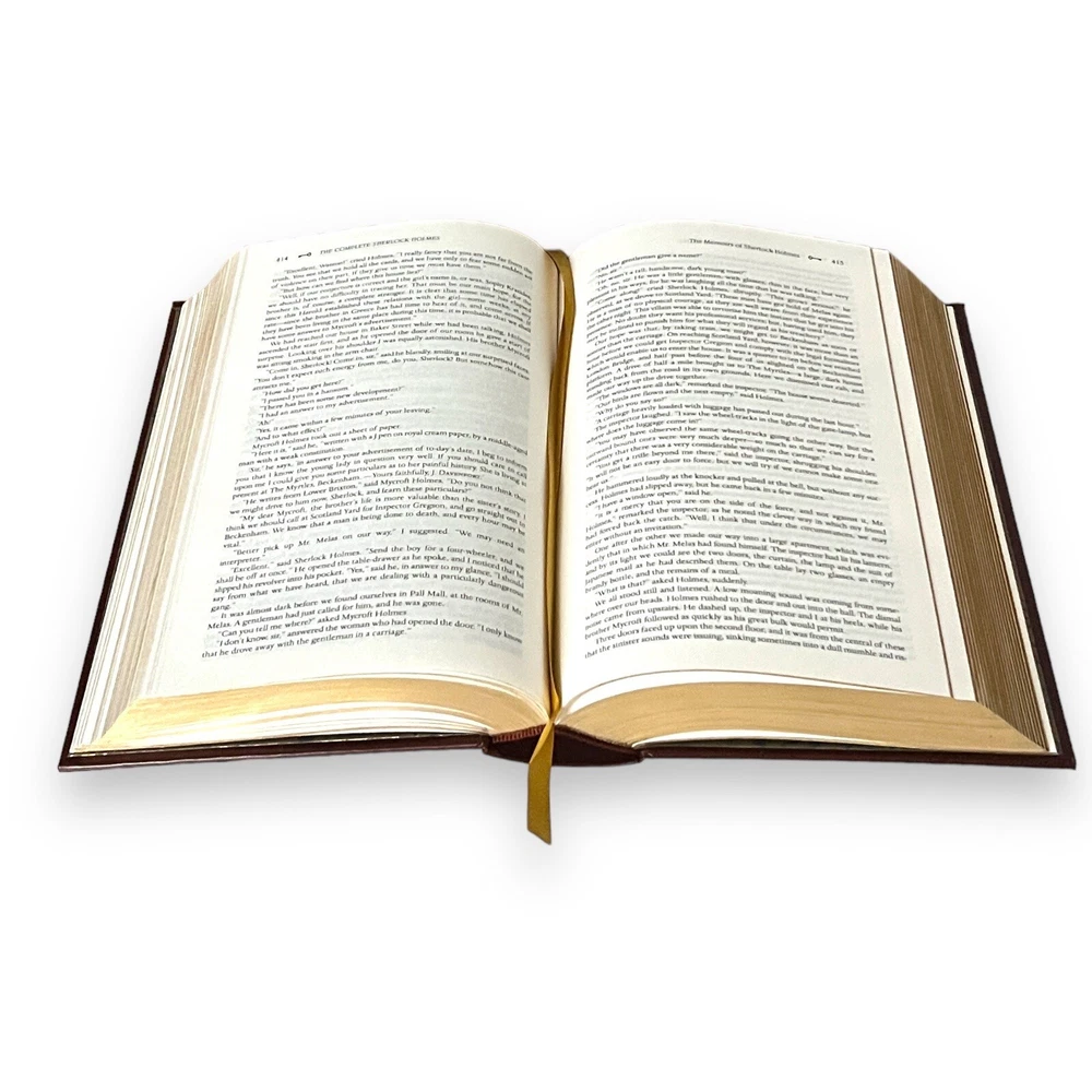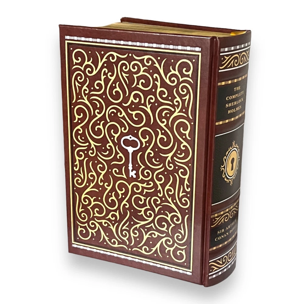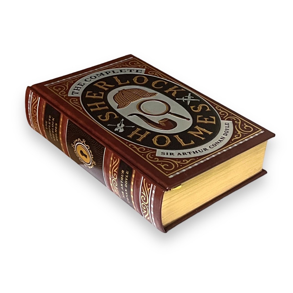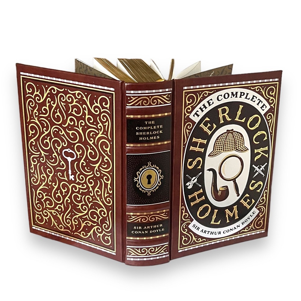 A master of deductive reasoning who can solve the most difficult crimes by spotting obscure clues overlooked by others, dilettante sleuth Sherlock Holmes was the hero of 60 stories written by Sir Arthur Conan Doyle between 1887 and 1927. With the help of his loyal friend, Doctor Watson, Holmes brought countless crooks, thieves, swindlers, and murderers to justice. He even rose from the dead after Doyle tried to dispatch him in his twenty-fourth adventure, and readers protested. Some Sherlock Holmes stories rank among the most famous in detective fiction, among them - "A Study in Scarlet," "A Scandal in Bohemia," "The Speckled Band," and "The Hound of the Baskervilles." Here, in one volume, are all four full-length novels and 56 short stories about the colorful adventures of Sherlock Holmes every word Sir Arthur Conan Doyle ever wrote about Baker Street's most famous resident. Also included is an introduction by lifetime Sherlockians Barbara and Christopher Roden. This volume features an exquisitely designed bonded-leather binding, with distinctive gilt edging and a ribbon bookmark. Decorative, durable, and collectible, this book offers hours of pleasure to readers young and old and are an indispensable cornerstone for every home library. Author - Arthur Conan Doyle Page Count - 1096 Hardcover Leather Editions Product Dimensions - 6.5 H x 9.6 W x 2.3 D