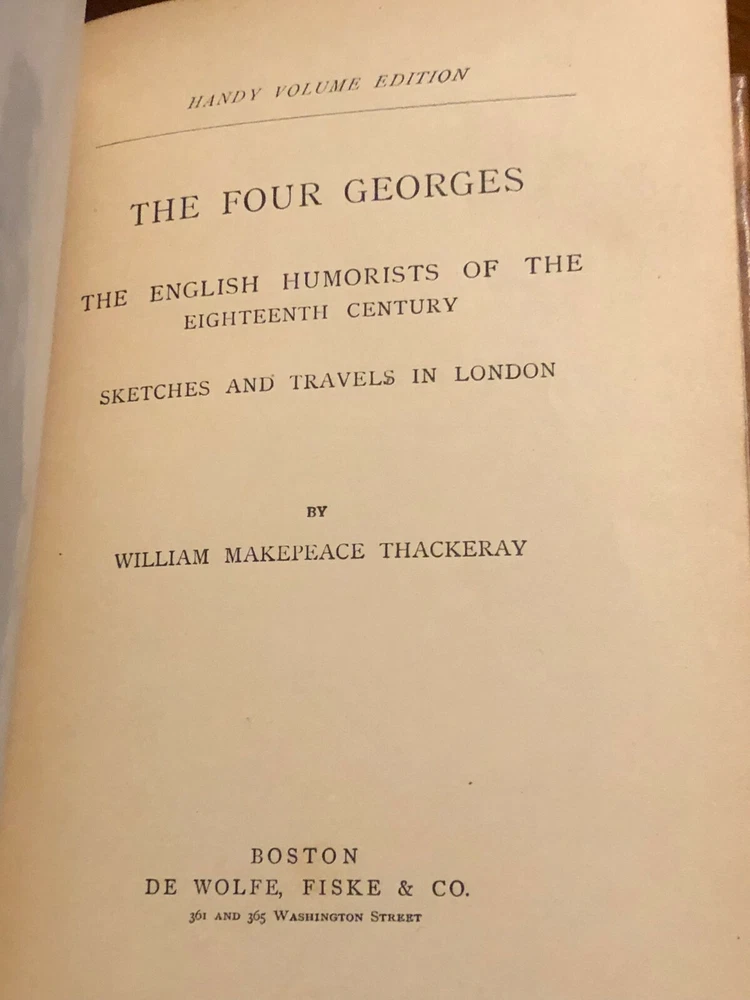 DEALING WITH PEOPLE by Robert Heller (Essential Managers) 1ST EDITION - Like New $13.99 Buy It Now E.T. The Extra-Terrestrial by William Kotzwinkle (Vintage 1982 - EXCELLENT COND) $7.99 Buy It Now THE POWER FO SELF-ESTEEM by Nathaniel Branden (Like New - HC) $15.99 Buy It Now THE BATTLE OF PEA RIDGE 1862 - CIVIL WAR (Pea Ridge National Park) VG CONDITION $7.29 Buy It Now THE FEN TIGER by Catherine Cookson (1ST EDITION - 1ST PRINTING) VG+ - RARE!!! $79.99 Buy It Now ETHAN CLEANS by Johanna Hurwitz (Beginner Reader) GOOD COND - PB $6.99 Buy It Now QUICK MEDICATION ADMINISTRATION REFERENCE by Judith Myers (3rd Edition) VG+ COND $10.44 Buy It Now THE FOUR GEORGES by William Makepeace Thackeray (Handy Volume Ed) LEATHER BOUND THE FOUR GEORGES The English Humorist of the Eighteenth Century Sketches and Travels in London by: William Makepeace Thackeray EXCELLENT CONDITION - HARDCOVER (GENUINE LEATHER BOUND) - ILLUSTRATED Item Pictured is the One You WILL Receive! No Markings or folds on pages (name printed inside front cover) About the Book: Title: The Four Georges: The English Humorist of the Eighteenth Century - Sketches and Travels in London Author: William Makepeace Thackeray Publisher: De Wolfe, Fiske & Co. Special At tributes : Handy Volume Edition - Illustrated Format: Hardcover - No Dust Jacket - Genuine Leather Bound Copyright: Unstated - Vintage Pages: 457 ISBN: not available Dimensions: 5.75 x 8.25 x 1.50 inches GREEN GOES WITH EVERYTHING: Simple Steps To A Healthier Life by Sloan Barnett Buy It Now $15.99 THE KENNEDY HALF CENTURY by Larry J. Sabato (1ST U.S. EDITION - 1ST PRINTING) Buy It Now $13.99 SIMPLY STARS: Quilts That Sparkle by Alex Anderson (LIKE NEW) Buy It Now $20.99 JOURNAL: The Galapagos Islands (Harcourt Science: Above-Level Reader - Grade 4-5 Buy It Now $7.19 MODEL RAILROADER MAGAZINE (January 1977) Chesapeake & Ohio 2-10-4, Royal Gorge W Buy It Now $9.99 THE FAIR TRADE FRAUD: How Congress Pillages The Consumer by James Bovard (SIGNED Buy It Now $25.99 5% OFF ALL BOOKS & MUSIC Shop Now PURCHASE ANY 3 ITEMS AND TAKE 10% OFF SHOP NOW Shipping Returns We Ship Monday - Saturday. We will always try to ship your item the same day if payment is made during normal business hours. ** International Shipping: Import duties, taxes, and charges are NOT INCLUDED in the item price or shipping charges. These charges are the buyer's responsibility. Please check with your country's customs office to determine what these additional costs will be prior to bidding / buying. These charges are normally collected by the delivering freight (shipping) company or when you pick the item up do not confuse them for additional shipping charges. We do not mark merchandise values below value or mark items as "gifts." US and International government regulations prohibit such behavior. Your satisfaction is very important to us. Please contact us via the methods available within eBay regarding any problems before leaving negative feedback. Any defects, damages, or material differences with your item, must be reported to us within 7 days of receipt of the item or 30 days from date of shipment. Our company is dedicated to providing you with the best quality, lowest cost products on eBay. Refer to eBay Return policy for more details. You are covered by the eBay Money Back Guarantee if you receive an item that is not as described in the listing. ABOUT US Discount Books & Stuff is a Small Family Owned Business that takes pleasure in providing Great Customer Service, Discount Prices & Quality Products!