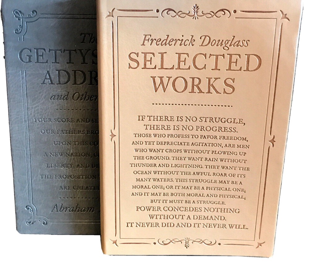Set of 2 Books THE GETTYSBURG ADDRESS & OTHER WORKS by Abraham Lincoln Brand New Abraham Lincoln was one of the most gifted orators of his day, and he wielded words both to incite the American people to the cause of justice and to offer consolation to a country riven by civil war. This omnibus volume features more than fifty speeches, addresses, and letters including “The Gettysburg Address,” his memorial to the American Civil War dead; the “Emancipation Proclamation,” which formally ended the institution of slavery when it was signed into law on January 1, 1863; and his now famous “House Divided” speech. FREDERICK DOUGLASS: SELECTED WORKS by Frederick Douglass Brand New Born into slavery in Maryland, Frederick Douglass escaped to freedom in 1838. The publication of his autobiographical Narrative of the Life of Frederick Douglass, an American Slave in 1845 informed readers of the horrors he endured in servitude and became a leading document of the abolitionist cause. This volume includes, in addition to his famous narrative, fourteen selected addresses and orations, including “My Escape from Slavery,” “Letter to His Old Master,” and the famous “What to the Slave is the Fourth of July.” These special edition features an elegantly designed cover and a durable flexible binding. It is an indispensable addition to any home history library. Send these book as a gift! We ship this item in gift quality condition with no price stickers or other markings. Buy with confidence from an established seller - we have over 20 years of eBay sales experience and more than 24,000 ratings! Shipped from a smoke-free, temperature controlled environment To see more great items and Value Packs at terrific prices, please visit our ebay store