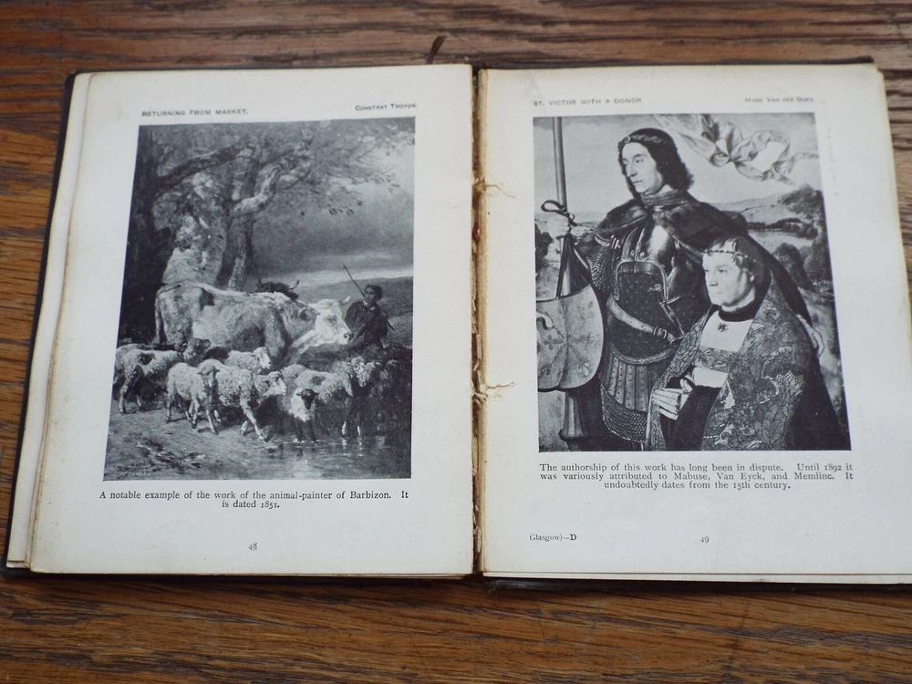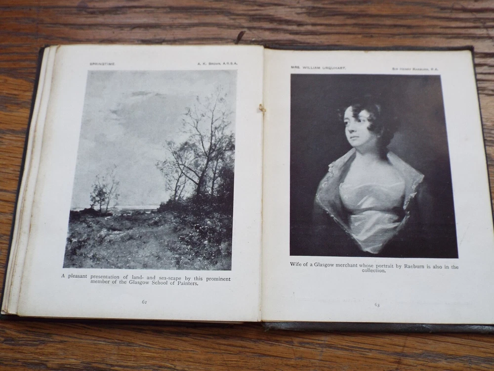 Antique leather book. Glasgow Art Gallery Collection b&w. prints. Book with significant signs of age/wear. Some pages separated from spine as pictured. Appears complete. AS IS....