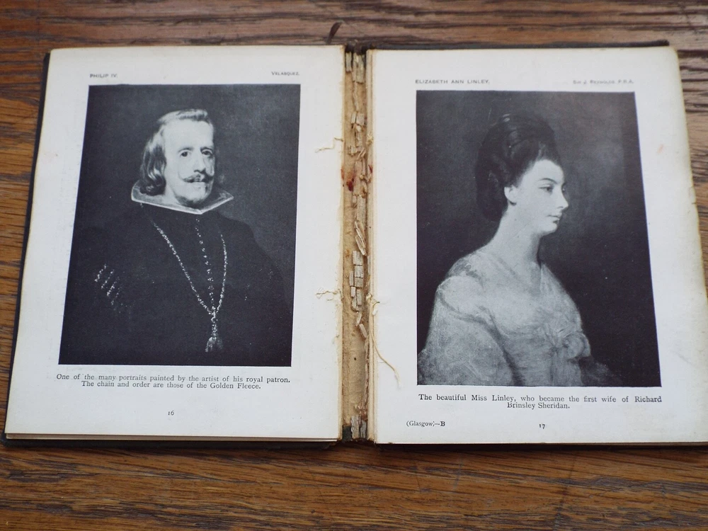 Antique leather book. Glasgow Art Gallery Collection b&w. prints. Book with significant signs of age/wear. Some pages separated from spine as pictured. Appears complete. AS IS.