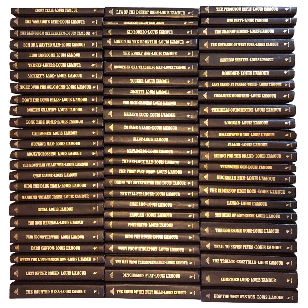 THE LOUIS L'AMOUR COLLECTION Western Fiction Hardcover Leatherette Bantam Books Books are in Excellent Used/ Like New condition. Normal shelf wear that comes with age. Crisp clean pages, Free from any markings or writing. (See images for details). Price is Per Book. Please use " Drop Down Menu" to select the Title you wish to purchase.