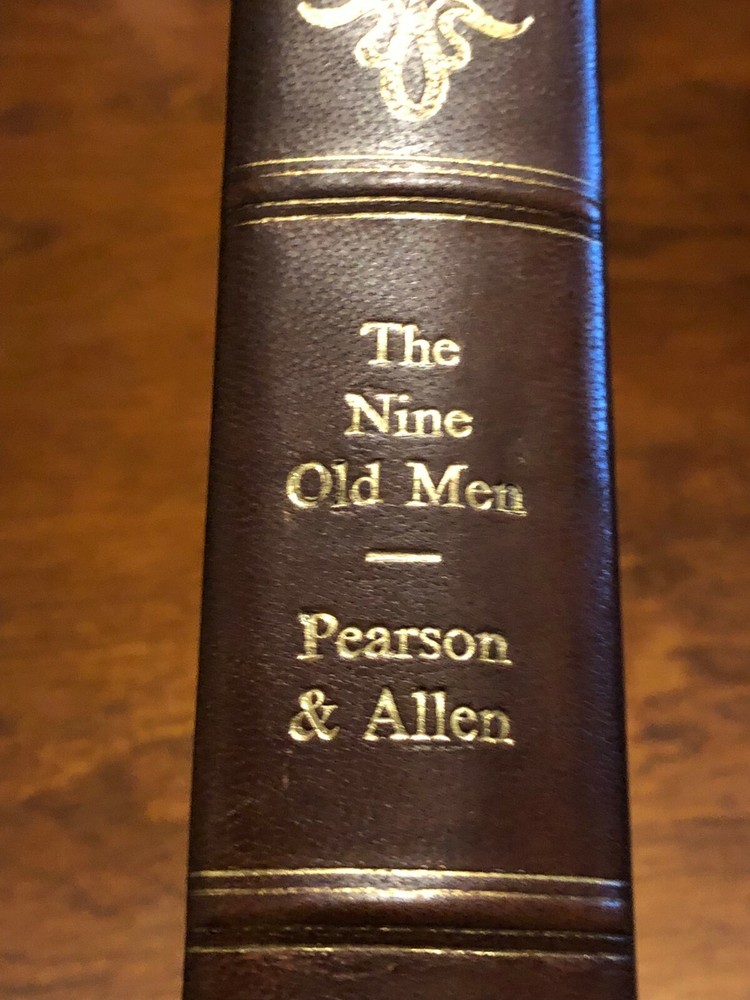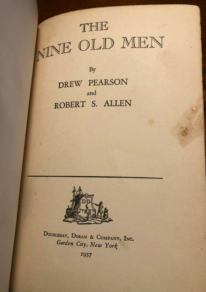 THE NINE OLD MENby: Drew Pearson & Robert S. Allen VERY GOOD CONDITION - HARDCOVER (GENUINE LEATHER BOUND) - VINTAGE 1937Item Pictured is the One You WILL Receive! No Markings or folds on pages About the Book: Title: The Nine Old Men Author: Drew Pearson & Robert S. Allen Publisher: Doubleday, Doran & Company Special Attributes: Genuine Leather Bound Format: Hardcover - No Dust Jacket - Genuine Leather Bound Copyright: 1937 Pages: 325 ISBN: not available Dimensions: 5.75 x 8.25 x 1.50 inches DEALING WITH PEOPLE by Robert Heller (Essential Managers) 1ST EDITION - Like New $13.99 Buy It Now E.T. The Extra-Terrestrial by William Kotzwinkle (Vintage 1982 - EXCELLENT COND) $7.99 Buy It Now THE POWER FO SELF-ESTEEM by Nathaniel Branden (Like New - HC) $15.99 Buy It Now THE BATTLE OF PEA RIDGE 1862 - CIVIL WAR (Pea Ridge National Park) VG CONDITION $7.29 Buy It Now THE FEN TIGER by Catherine Cookson (1ST EDITION - 1ST PRINTING) VG+ - RARE!!! $79.99 Buy It Now ETHAN CLEANS by Johanna Hurwitz (Beginner Reader) GOOD COND - PB $6.99 Buy It Now QUICK MEDICATION ADMINISTRATION REFERENCE by Judith Myers (3rd Edition) VG+ COND $10.44 Buy It Now THE NINE OLD MEN by Drew Pearson & Robert S. Allen (1937 - GENUINE LEATHER BOUND THE NINE OLD MEN by: Drew Pearson & Robert S. Allen VERY GOOD CONDITION - HARDCOVER (GENUINE LEATHER BOUND) - VINTAGE 1937 Item Pictured is the One You WILL Receive! No Markings or folds on pages About the Book: Title: The Nine Old Men Author: Drew Pearson & Robert S. Allen Publisher: Doubleday, Doran & Company Special At tributes : Genuine Leather Bound Format: Hardcover - No Dust Jacket - Genuine Leather Bound Copyright: 1937 Pages: 325 ISBN: not available Dimensions: 5.75 x 8.25 x 1.50 inches GREEN GOES WITH EVERYTHING: Simple Steps To A Healthier Life by Sloan Barnett Buy It Now $15.99 THE KENNEDY HALF CENTURY by Larry J. Sabato (1ST U.S. EDITION - 1ST PRINTING) Buy It Now $13.99 SIMPLY STARS: Quilts That Sparkle by Alex Anderson (LIKE NEW) Buy It Now $20.99 JOURNAL: The Galapagos Islands (Harcourt Science: Above-Level Reader - Grade 4-5 Buy It Now $7.19 MODEL RAILROADER MAGAZINE (January 1977) Chesapeake & Ohio 2-10-4, Royal Gorge W Buy It Now $9.99 THE FAIR TRADE FRAUD: How Congress Pillages The Consumer by James Bovard (SIGNED Buy It Now $25.99 5% OFF ALL BOOKS & MUSIC Shop Now PURCHASE ANY 3 ITEMS AND TAKE 10% OFF SHOP NOW Shipping Returns We Ship Monday - Saturday. We will always try to ship your item the same day if payment is made during normal business hours. ** International Shipping: Import duties, taxes, and charges are NOT INCLUDED in the item price or shipping charges. These charges are the buyer's responsibility. Please check with your country's customs office to determine what these additional costs will be prior to bidding / buying. These charges are normally collected by the delivering freight (shipping) company or when you pick the item up do not confuse them for additional shipping charges. We do not mark merchandise values below value or mark items as "gifts." US and International government regulations prohibit such behavior. Your satisfaction is very important to us. Please contact us via the methods available within eBay regarding any problems before leaving negative feedback. Any defects, damages, or material differences with your item, must be reported to us within 7 days of receipt of the item or 30 days from date of shipment. Our company is dedicated to providing you with the best quality, lowest cost products on eBay. Refer to eBay Return policy for more details. You are covered by the eBay Money Back Guarantee if you receive an item that is not as described in the listing. ABOUT US Discount Books & Stuff is a Small Family Owned Business that takes pleasure in providing Great Customer Service, Discount Prices & Quality Products!