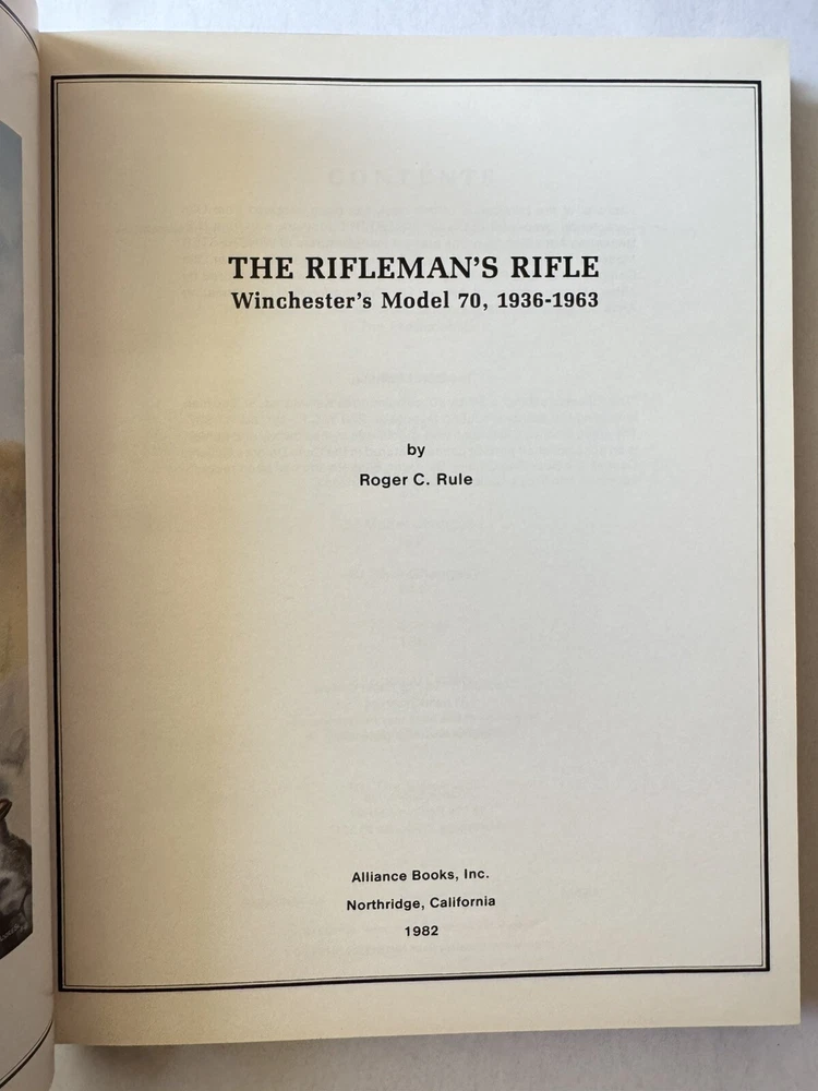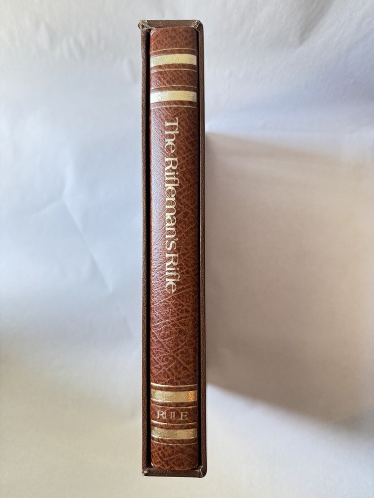 THE RIFLEMAN'S RIFLE: Winchester's Model 70, 1936-1963 - This is book 278 of 500. Written and signed by Roger C. Rule Published "Deluxe" Limited First-Edition in 1982 by Alliance Books - This is book 278 of 500. Leather-bound, gold-embossed collectable hardcover book with book slip case included. ~ The book slip case has a tear, see photos ~ Some minor wear on the book spine, see photos ~ There are a few pages with minor finger smudges (See Photos), all other pages have been inspected and are excellent, no creases or tears ~There is no creases, tears, or writing on the pages and this book has not been personalized. If you have questions please ask prior to bidding/purchasing Thanks for looking