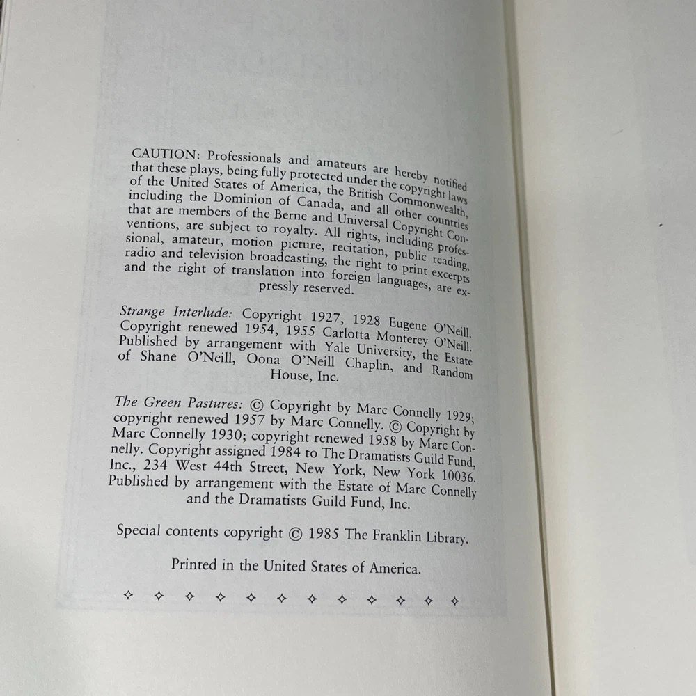 TWO PLAYS Eugene O'Neill Marc Connelly Franklin Library LEATHER Pulitzer. Shipped with USPS Media Mail.