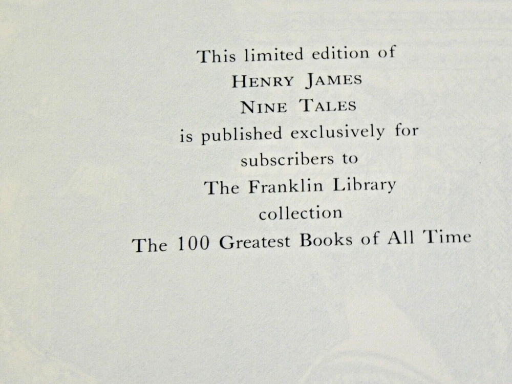 Limited Edition - 1977 Heavy Book 678 Pages 100 Greatest Books of All Time Collection Moiré endpapers Genuine Leather Gilt edges on 3 sides Raised bands on spine Ribbon bookmark Please see pictures for more information and detail ***** This beautiful volume is in excellent condition. This volume has the appearance of never been opened (except for pictures) or read. There are no bookplates, writings. Bookends not included. Please see pictures for more information and detail. Gorgeous! Please feel free to contact me with any questions you might have. I will be glad to take additional pictures. I tried to describe the book through words and pictures the best I can but if you are not 100% satisfied with the purchase, please know you can return the book for full refund. Boxed and packaged VERY carefully --- Will ship within 1 business day of receiving payment. Thank you for looking! <meta name="viewport" content="width=device-width, initial-scale=1"&