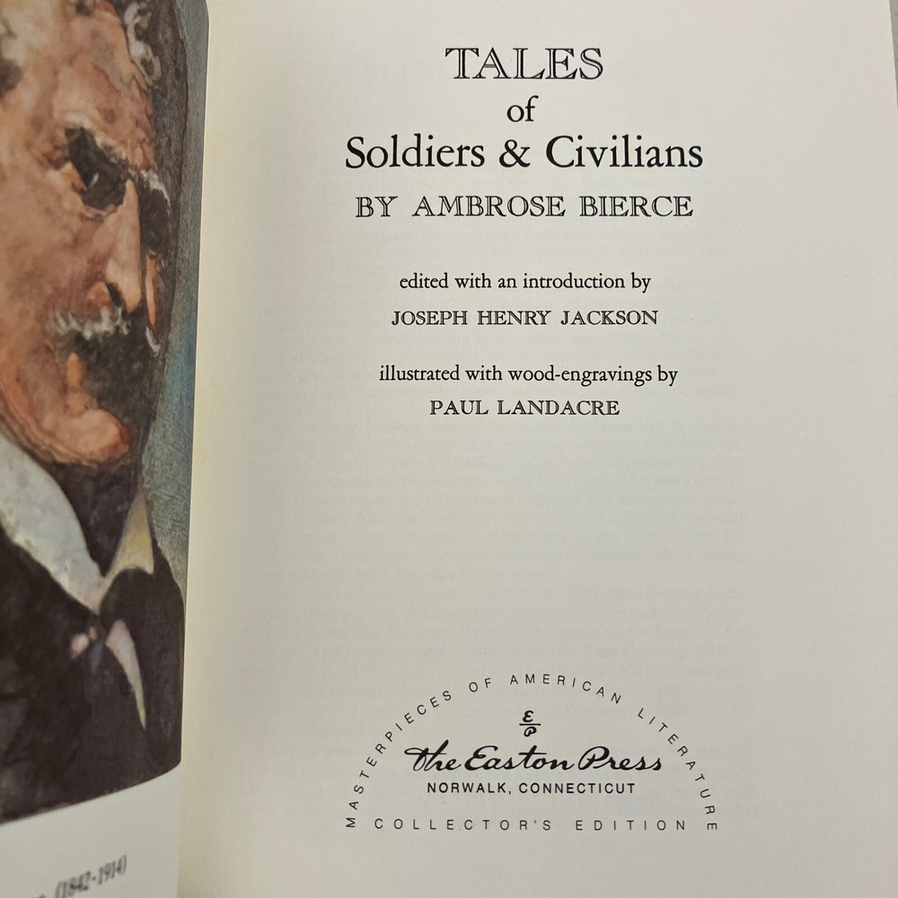 This Easton Press edition of *Tales of Soldiers & Civilians* is a beautiful collector's piece. Despite some expected wear, the binding is solid, and the gilded edges add elegance. No stains or odors—just a well-loved classic ready for a new home. BrightLight Books offers reliable service with a money-back guarantee, making this a great purchase for fans of Ambrose Bierce or vintage editions. Local pickup available in Fern Park!
