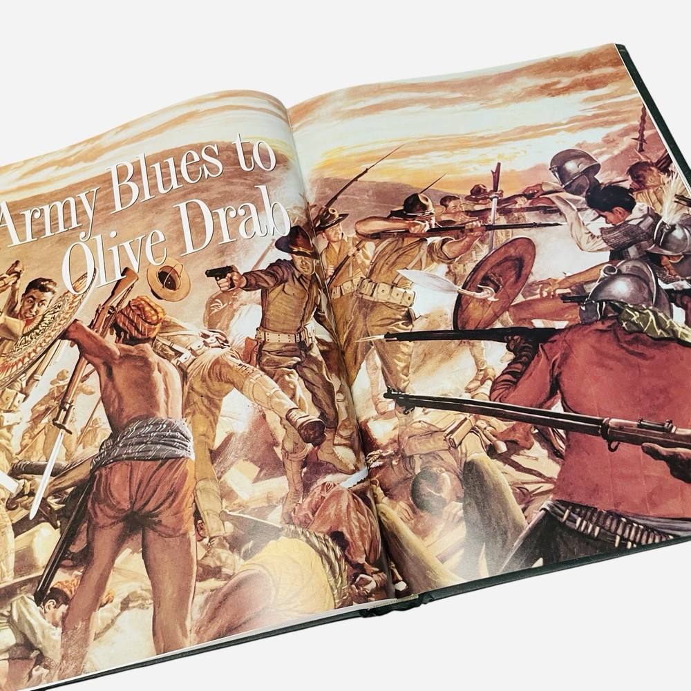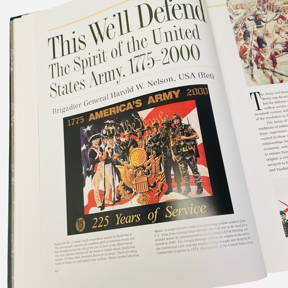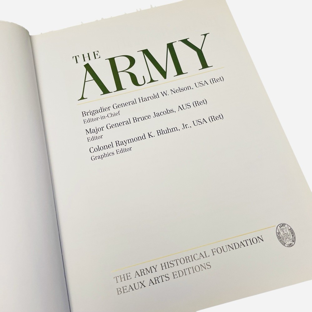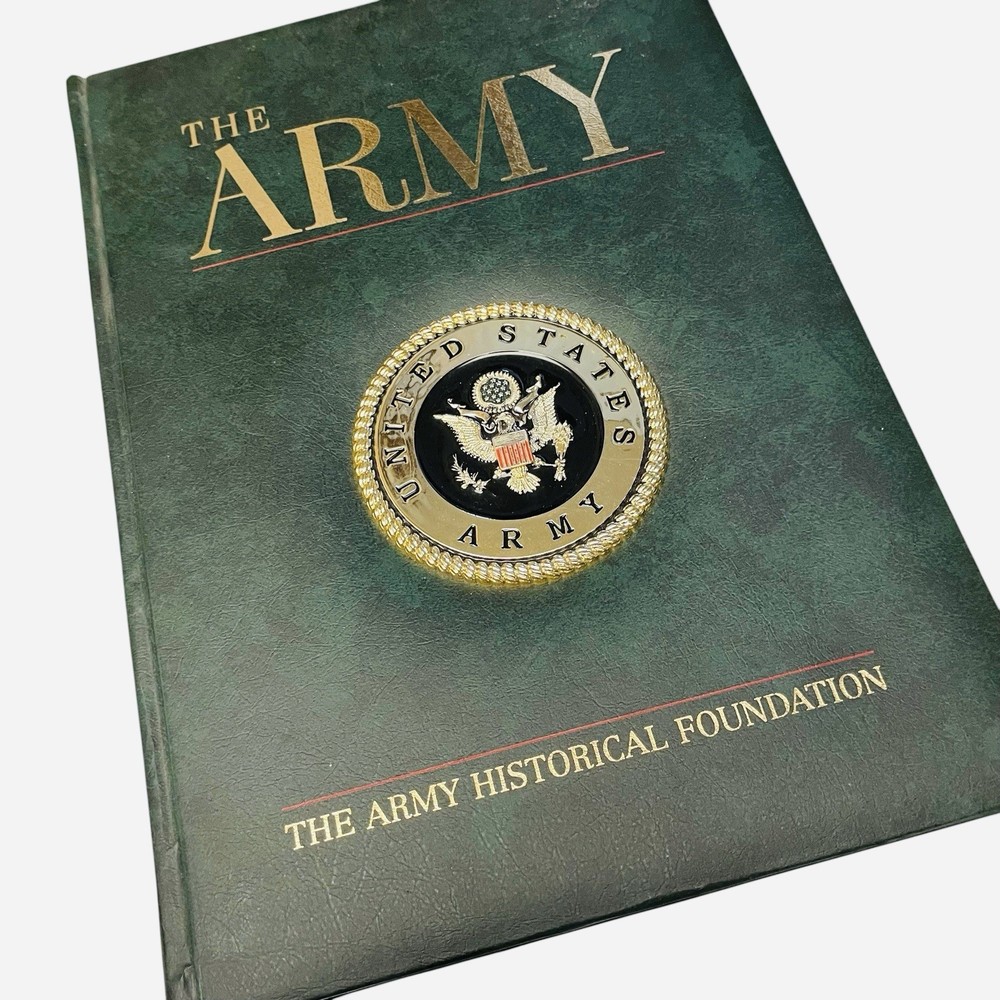 The ARMY The Army Historical Foundation LARGE Book Collectible Beaux Arts Edition Green faux leather with raised logo of the Army Approximately 9.5” x 13.5” x 1.25” 352 page Page 11/12 has a 3” year at the top of the page