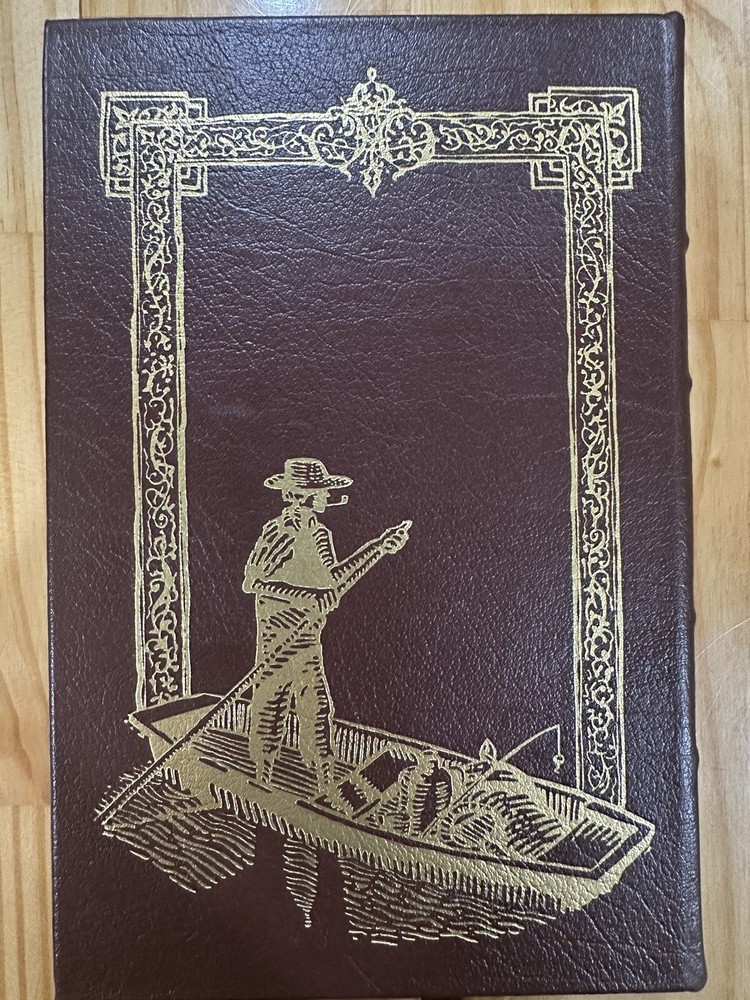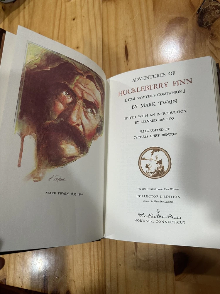 Dive into the thrilling world of "The Adventures of Huckleberry Finn" with this exquisite 1994 leather collector's edition from Easton Press. This classic tale by Mark Twain, renowned for its vivid depiction of life along the Mississippi River, is beautifully bound in leather and features the original illustrations by Thomas Hart Benton, adding a layer of historical artistry to this literary gem. As part of the Easton Press 100 Greatest Books Collection, this edition is a treasure for both literary enthusiasts and collectors. Fully embracing the English language and set in the North American region, it captures the essence of action and adventure through the eyes of Huck Finn. Published in Norwalk, Connecticut, this original piece is a testament to the enduring legacy of American literature.