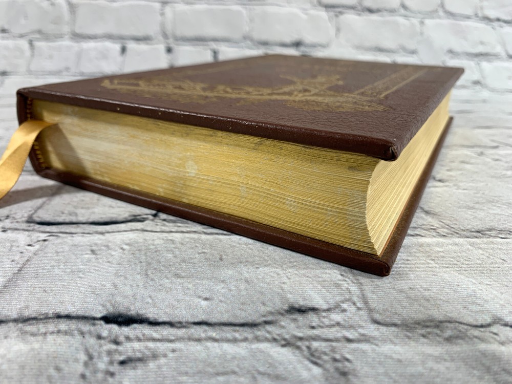 Book Condition: Very Good Dust Jacket Grade: No jacket Format: Hardcover Leather Bound Year: 1994 Stated Print: Publisher: Easton Press Edition: Additional Condition Info: Please refer to pictures for overall condition. Book cover contains light shelf wear, minor scuffs. Some of the text block gilt rubbed off. __________________________________________ If you need more information, have questions or would like to request additional photos, please feel free to ask. BOOK CONDITION SCALE Like New: A book that looks new but has been read. May show the most minimal signs of shelf wear if any. Very Good: A book that does not look new and has been read but is in excellent condition. No obvious damage to the cover. Very minimal wear and tear. Pages are free of any highlighting or notes. May contain previous owners name or marks from bookstore. Good: Very minimal damage to the cover. May Contains minimal highlighting, underlining and/or note taking. May contain previous owners name or marks from bookstore. Acceptable: A book with obvious wear. May have minor damage but nothing that compromises the legibility or understanding of text. May contain heavy highlighting/underlining/notes. All significant defects will be noted. May contain previous owners name or marks from bookstore. As is: Describes a book that is sufficiently worn. This copy may be soiled, scuffed, stained, or spotted and may have loose joints, hinges, pages, etc. Any defects will be noted. DUST JACKET GRADING: (A) Excellent condition, may show the smallest signs of shelf wear if any. (B) Shows minor shelf wear, contains some small tears or creases mostly along edges. (C) Contains moderate shelf wear, contains some medium sized tears and stains. (D) Contains large tears and may have some very noticeable stains. (F) Contains heavy wear and tear, portions of the DJ may have been ripped off and is missing. May Contain heavy staining.