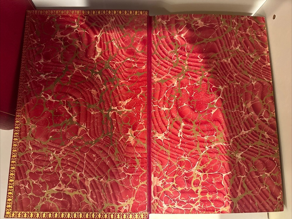 Incomplete set of The Bibliophilist's Library, published by George Barrie. Containing a specialized red leather binding. c. 1890s. All volumes numbered 43 of 100 copies printed for sale. Leather covers contain minimal rubbing and shelf wear. Interior pages are in very good condition and unmarked. Volumes Included: Series Volume 1: The Decameron of Giovanni Boccaccio Volume I Series Volume 2: The Decameron of Giovanni Boccaccio Volume II Series Volume 3: The Heptameron of Marguerite d'Angouleme Queen of Navarre Volume I Series Volume 4: The Heptameron of Marguerite d'Angouleme Queen of Navarre Volume II Series Volume 4: The History of Gil Blas of Santillana Volume I Series Volume 5: The History of Gil Blas of Santillana Volume II Series Volume 5: Persian Letters Volume I Series Volume 6: The History of Gil Blas of Santillana Volume III Series Volume 6: Persian Letters Volume II Series Volume 7: The Confessions of Jean-Jacques Rousseau Volume I Series Volume 8: The Confessions of Jean-Jacques Rousseau Volume II Handling cost covers insurance cost. JK- Ebay Shelf 3-a