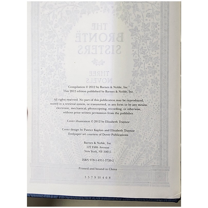 Product Details ISBN: 1435137205 EAN: 9781435137202 Publisher: Barnes & Noble Inc. (January 1, 2012) Language: English Hardcover: 864 pages Item Weight: 2.81 lbs. Product Dimensions: 5.98 x 1.73 x 9.13 inches BOOK OVERVIEW The Bronte Sisters features three classics of literature collected in a single volume. Jane Eyre, by Charlotte Bronte, is the tale of governess Jane Eyre and her passionate romance with Lord Rochester, her employer, whose dark and secret past comes back to haunt them. Wuthering Heights, by Emily Bronte, tells of the gypsy boy Heathcliff, and his obsessive love for Catherine Earnshaw, the young woman whose station is above his, but whose family he ultimately comes to master. Agnes Grey, by Anne Bronte, is the tale of its eponymous heroine, a governess in a wealthy household who yearns to find a man who will love and respect her for herself. These three novels, first published in 1847, are universally acclaimed as the most significant artistic achievements of one of the most talented families in all English letters. The Bronte Sisters is one of Barnes & Noble's leatherbound classics. Each volume features authoritative texts by the world's greatest authors in exquisitely designed bonded-leather bindings, with distinctive gilt edging and an attractive silk-ribbon bookmark. Decorative, durable, and collectible, these books offer hours of pleasure to readers of all ages and are an indispensable cornerstone for any home library. ABOUT THE AUTHOR Charlotte Bronte: Known for her novel Jane Eyre, Charlotte was the oldest of the Bronte siblings. Her works often explore themes of love, morality, and personal growth, alongside a strong sense of individualism. Emily Bronte: Best known for her only novel, Wuthering Heights, Emily's writing delves deeply into the passions and complexities of human relationships, often depicted in wild, untamed settings. Her style is darker and more brooding than that of her sisters. Anne Bronte: Though often overshadowed by her more famous sisters, Anne wrote The Tenant of Wildfell Hall, a novel that addresses issues like alcoholism, marriage, and the role of women in society. Her works are often more socially focused, with strong moral undertones. For items without product details. Please refer to the actual images for information. Product Condition Please read the store's product description, review images of the item for sale for accurate details, and ask questions when in doubt before purchasing the item. VERY GOOD. All pages and the cover are intact (including the dust cover, if applicable) and not marred by notes or highlighting. The spine may show signs of wear. Some books, "but not all," may include inscriptions or dedications. Due to the age or quality of the paper, they may develop signs of foxing. Feedback Dimittas Home Book Collection eBay feedback is automatically generated after leaving positive feedback. Thank you so much.