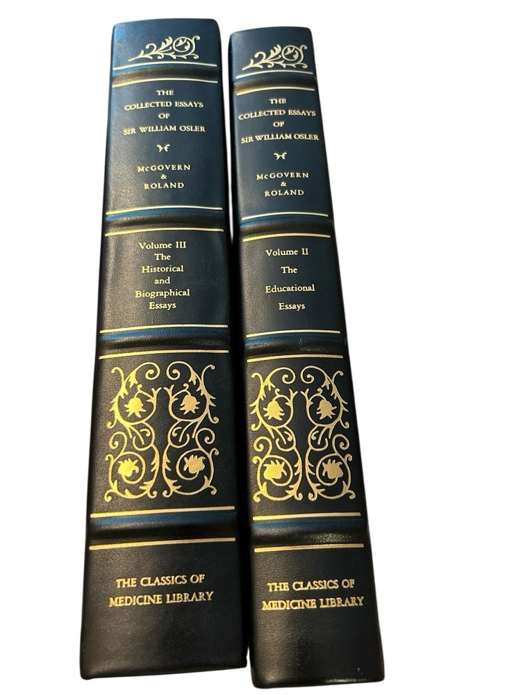 The Classics Medicine Library Collected Essays Sir William Osler Volumes 2 & 3 Good vintage condition. There is one scuff on the leather on the back cover of volume 3. Minor scratches. Please study pictures carefully before purchasing Feel free to ask us any questions. Thank you for visiting our store! Shlv