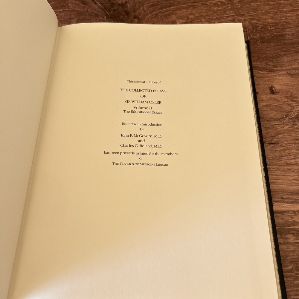 The Collected Essays Of Sir William Osler Volume 2 (Hardcover Leather bound). Condition is Good. Shipped with USPS Media Mail.
