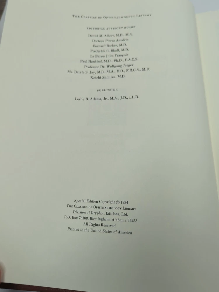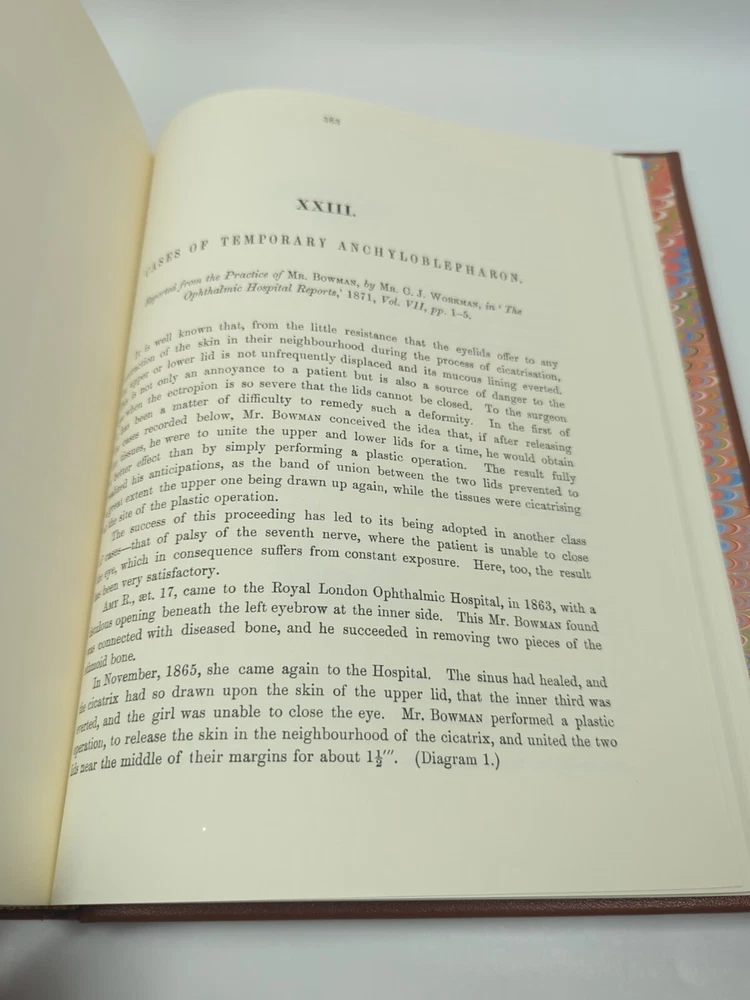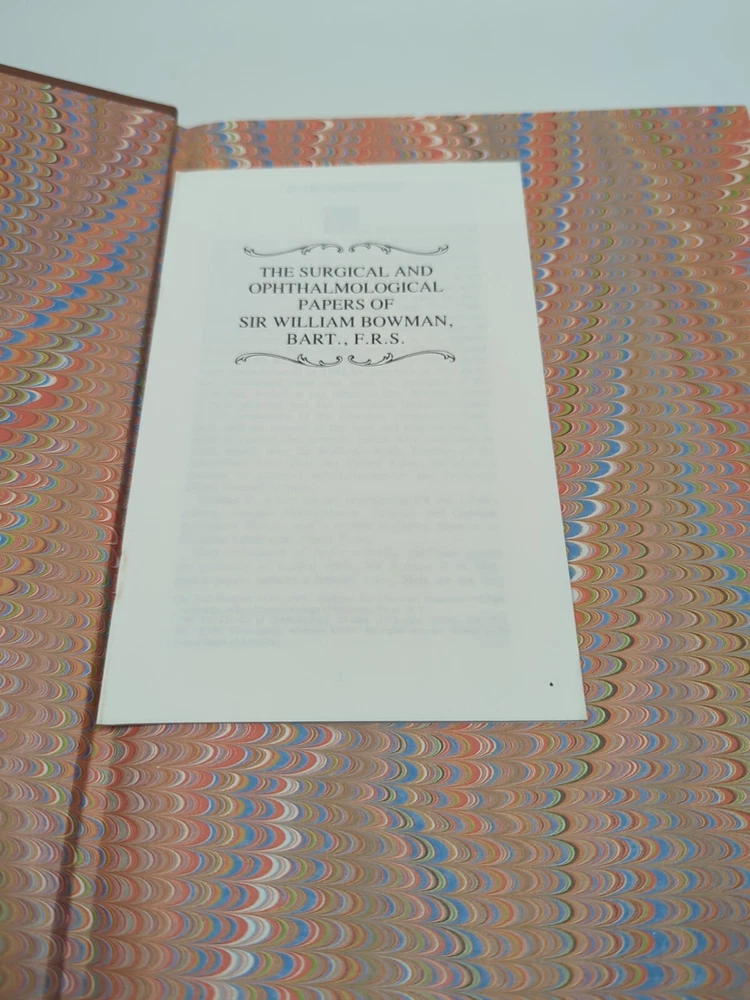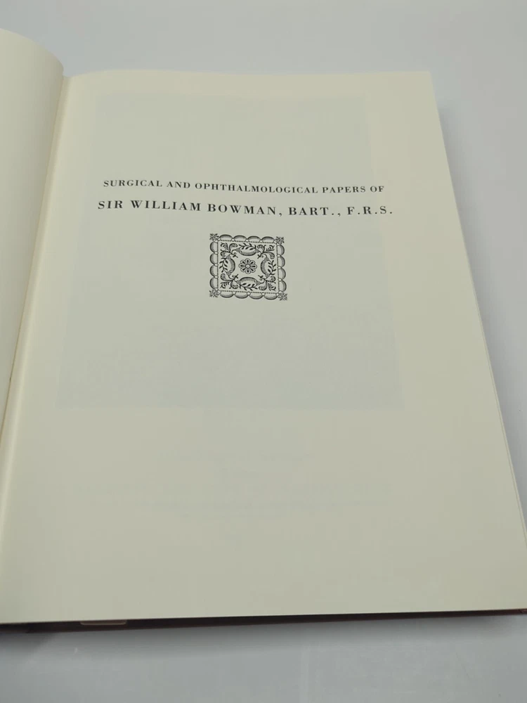 Very small cut on cover This is a rare and valuable collection of papers by Sir William Bowman, published in 1984 by Leslie B Adams. The books are bound in leather and are a limited edition, numbered copy. The collection includes original papers on ophthalmology, making it a must-have for any eye doctor or collector. The books are in their original form and have not been modified. The author, Sir W. Bowman, is known for his great contributions to the field of ophthalmology. The books are in English and are perfect for those interested in the history of the field.