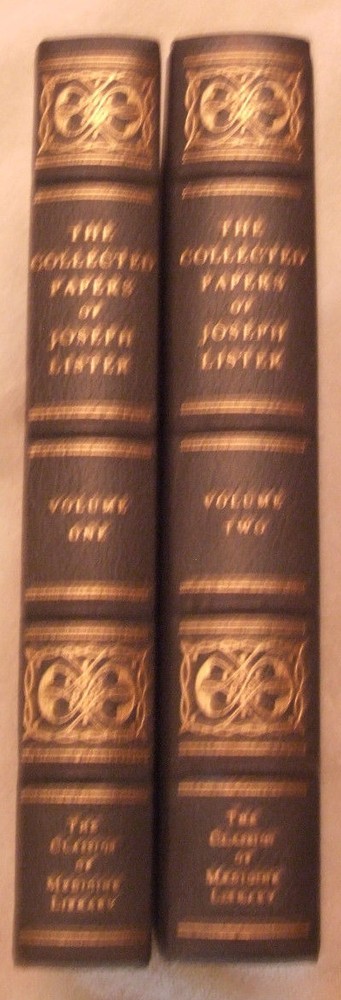 I am selling the large, leather bound, 2 volume set, The Collected Papers of Joseph, Baron Lister. These books are special edition, privately printed for the members of the Classics of Medicine Library. The books are in very good condition. They were published in 1979 by the Clarendon Press, Oxford. They will be specially wrapped and shipped. (BS)